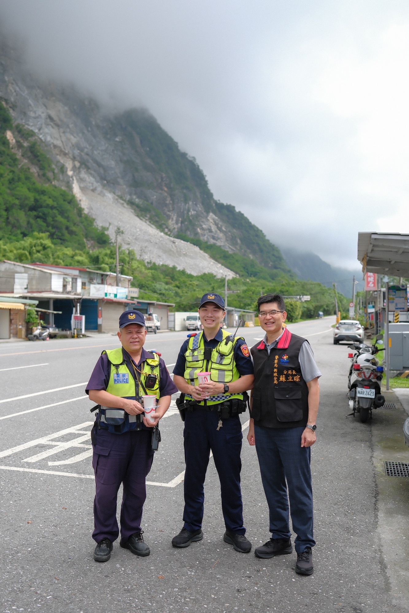 新城警分局所編排端節連假交通疏導勤務,員警仍「堅守崗位」出勤,針對轄區重要路段、路口疏導,分局長蘇立琮為了解連假首日交通狀況,也親自前往轄區崇德管制站、七星潭查看車流,並且致贈冰涼飲料予現場執勤同仁,慰勉同仁的辛勞。