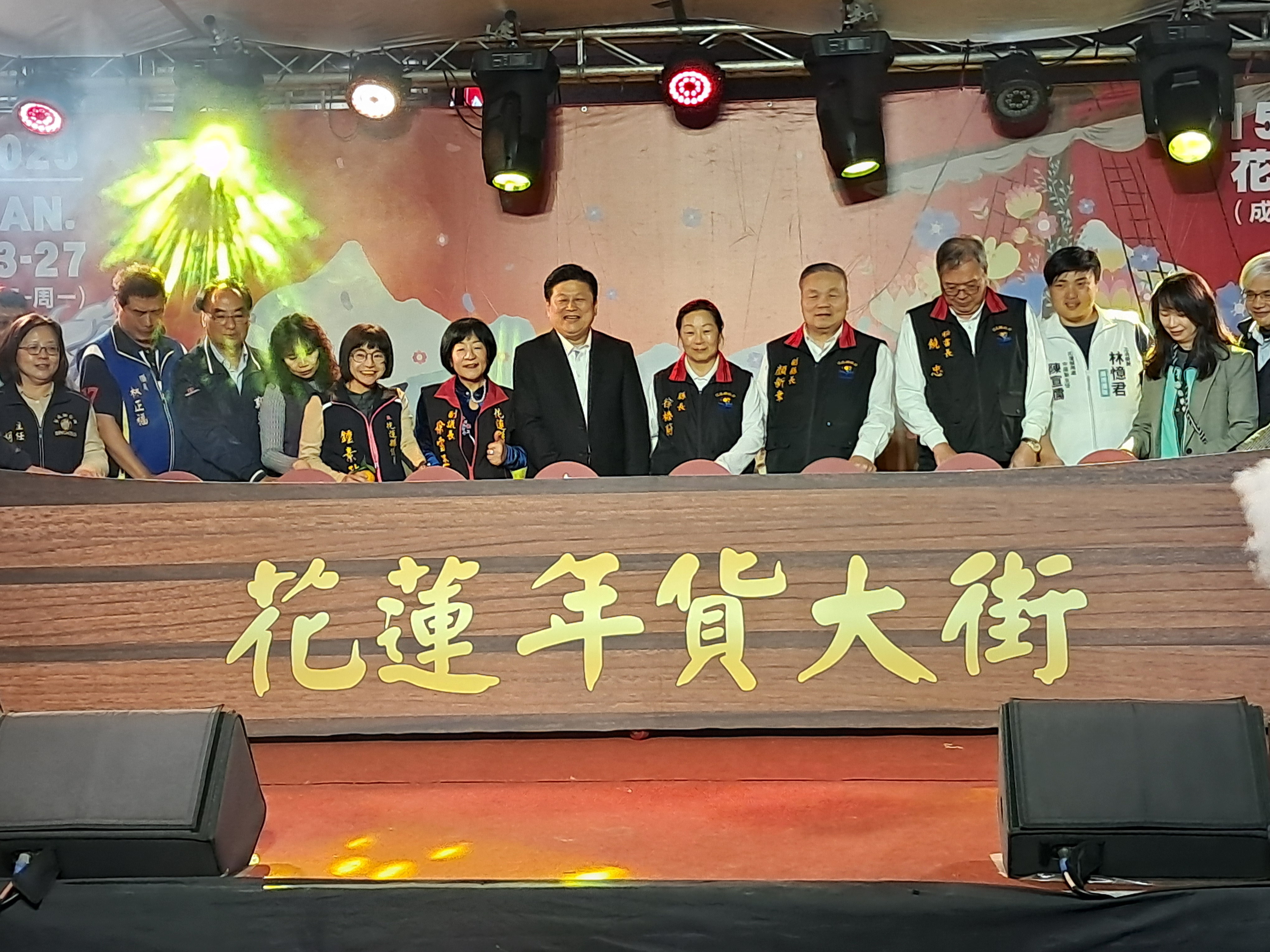 開幕活動嘉賓如雲包括立法委員傅崐萁、農業部農糧署東區分署長林美華、花蓮區農業改良場副場長宣大平、茶改場東部分場長蕭建興、花蓮縣議會徐雪玉副議長、縣議員鐘素政、吳東昇、林則葹、韓林梅、鄭乾龍、光豐地區農會理事長曾天滄、常務監事王金財、總幹事張明發、吉安鄉農會常務監事彭榮光、新秀地區農會推廣主任林源雄、花蓮市農會推廣主任柯惠娟、花蓮區漁會總幹事林俊吉、壽豐鄉農會總幹事黃啟祥、花蓮縣副縣長顏新章、秘書長饒忠、農業處長陳淑雯、客家處長潘乾鑑、消防局長吳兆遠、衛生局長朱家祥、稅務局長呂玉枝、政風處長林木本、主計處長楊姿宜、人事處長吳賢惠、觀光處長余明勳、財政處長劉台文、花蓮市公所市場管理所長邱信都、工商策進會總幹事張福檳等人皆出席活動共襄盛舉。為期五天活動的年貨大街,將於每日下午15時至22點,在花蓮日出大道(重慶路至成功街)澎湃開賣主辦單位表示,今年的年貨大街不僅提供豐富的花蓮特色年貨,還特別設置了四大拍照打卡裝置和多重滿額好禮,並與太平洋燈會結合,串聯東大門夜市、中華商圈,整合夜市黃金三角,打造花蓮縣最具年節氣氛的觀光區域,冀望共創繁花盛開的新氣象。