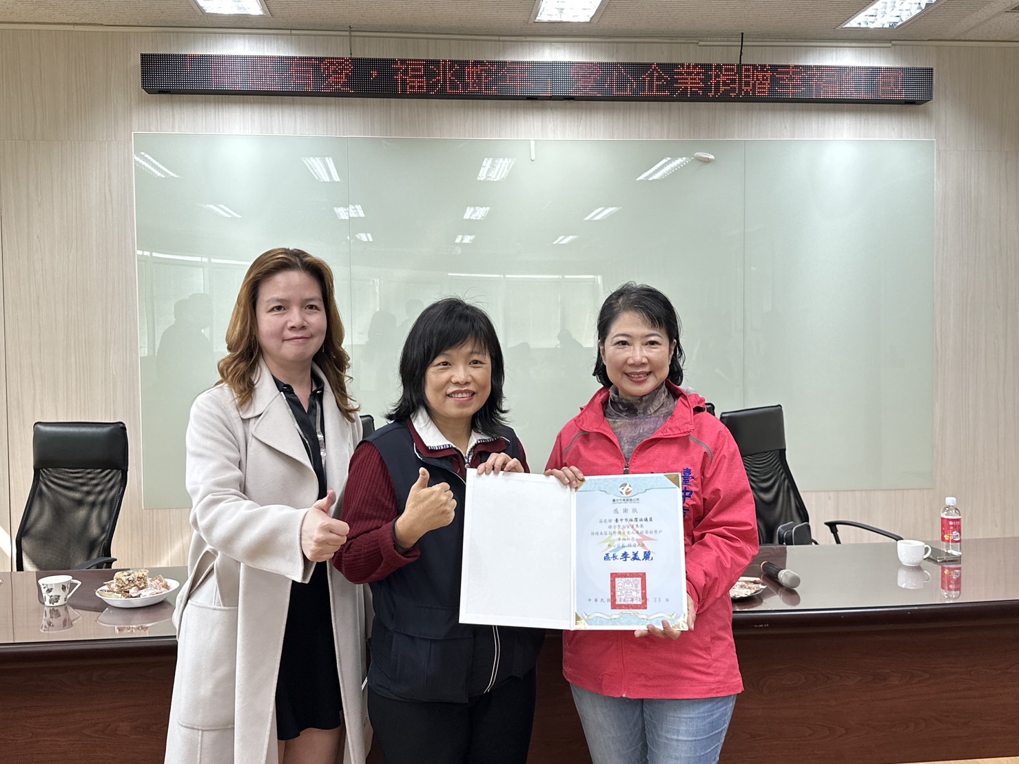 台中市議員林霈涵23日媒合聖石金業集團協同南區區公所,於春節前夕捐贈幸福紅包,關懷南區22里內的176戶獨居長輩,在南區區公所舉辦捐贈儀式。