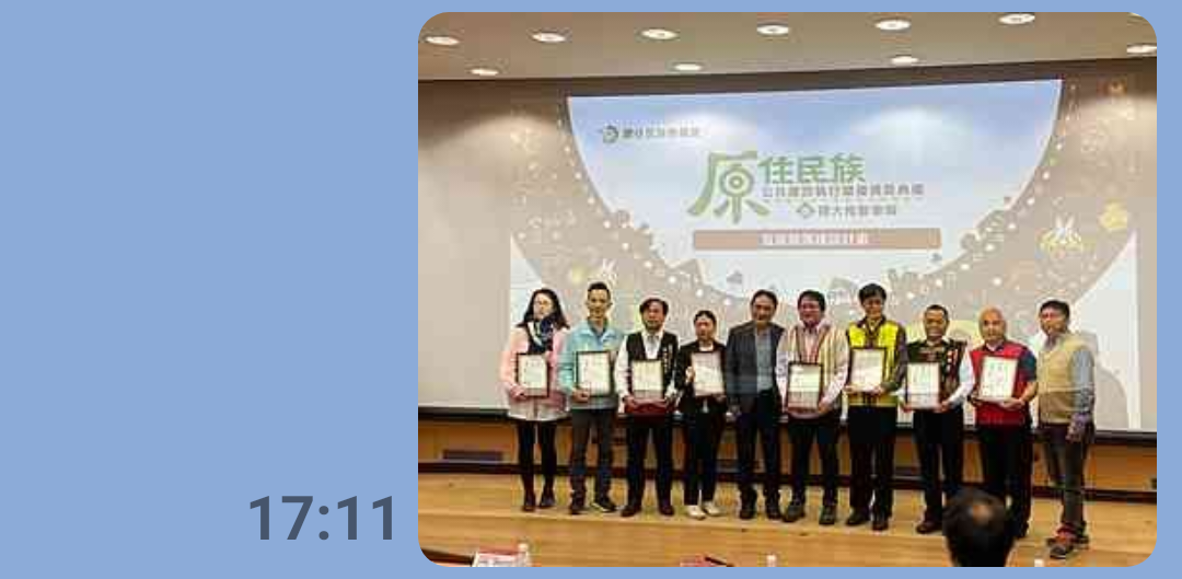 原住民族委員會例行原住民族地區公共工程年終考核,分別就原住民族部落特色道路改善計畫、宜居部落建設計畫以及原住民族地區施工查核三大面向,並就「發包作業」、「預算執行」、「執行進度」、「計畫績效(品質)」等項目進行評比,以表揚成績優良的縣市政府和鄉鎮市。其中花蓮市公所以總分90.1分在全台各執行機關中脫穎而出。