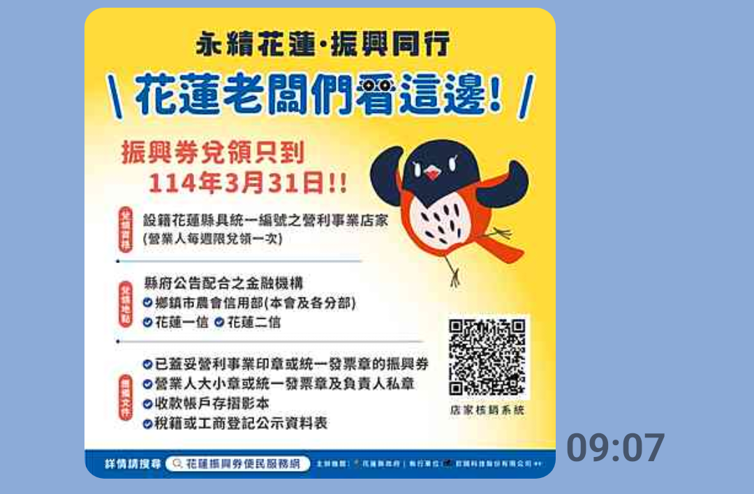 花蓮振興券兌領截止倒數! 頭家們請把握3月31日前完成兌領
