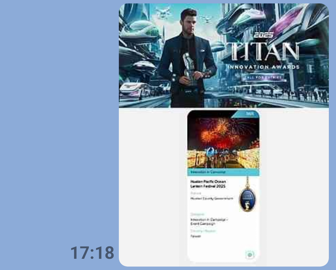 美國「泰坦創新獎(Titan Innovation Awards)」由知名國際獎項機構—IAA國際大獎協會(International Awards Associate)創立,旨在表彰全球於行銷推廣領域展現卓越創意、並透過有效溝通與影響力,為世界帶來深遠影響的單位與個人。該獎項高度重視創新精神,而「2025花蓮太平洋燈會」憑藉創新展演與高效經濟效益,經由評審委員依據「創新與獨特性」、「執行與實施」、「產業影響力」及「整體體驗與記憶度」等四項評比指標審核後,最終於「活動創新」類別中脫穎而出,獲頒該類別「金獎(Gold Winner)」肯定,讓花蓮的節慶活動藉由創新創意展演成果走向世界,更讓世界遊客走進蓮!