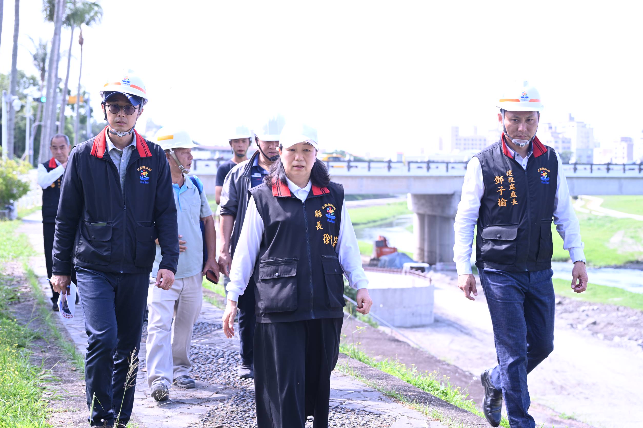 花蓮縣長徐榛蔚今(16)日,在縣府建設處長鄧子榆及同仁陪同下,親自視察「美崙溪左菁華護岸0K+780-1K+870新建引道串連工程」進度,並指示建設處進一步優化沿線設施。
