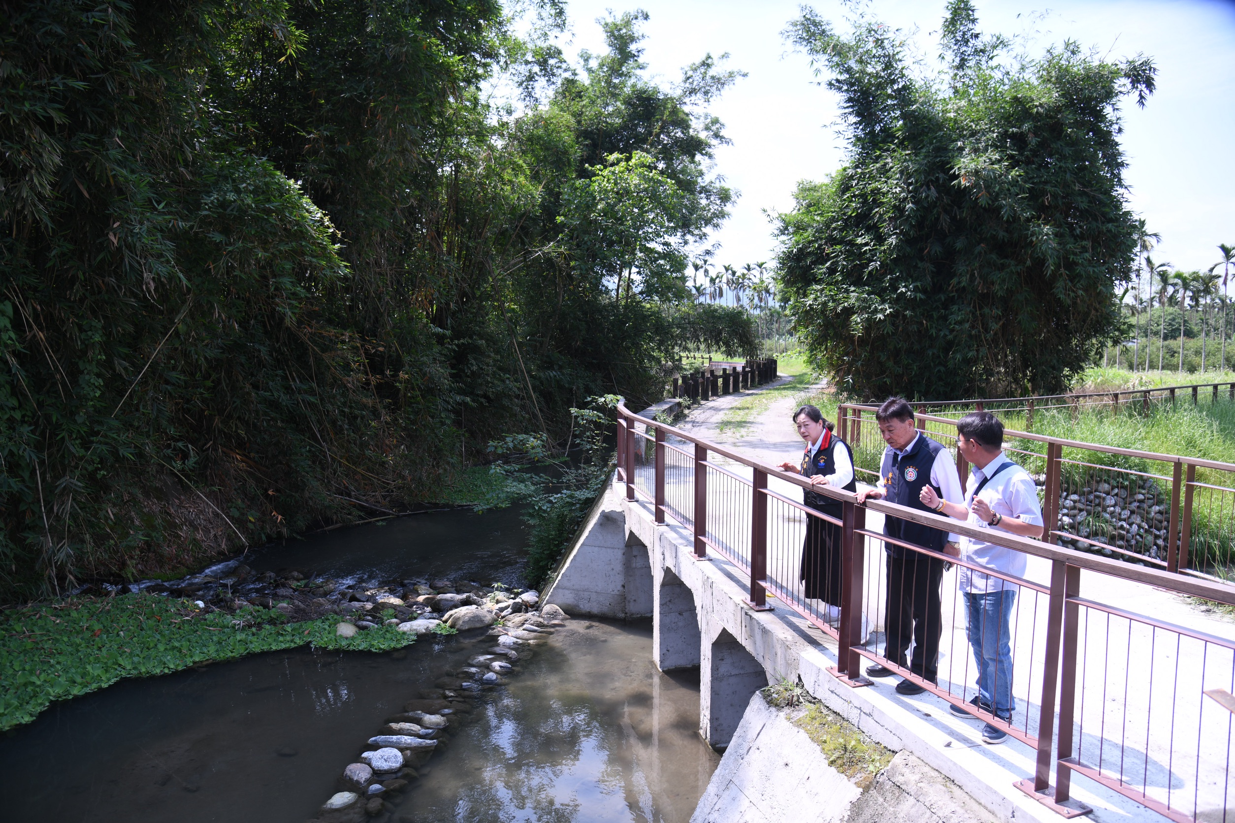 縣長徐榛蔚首先至「大華大全排水生態景觀池水環境改善工程」現場,關切目前最新工程進度及巡視周邊環境,以及是否落實規劃設計,同時釐清各工程權責單位,確立步道之維護管理,她期許工程如期如質順利完工,確保排洪功能,透過加強工程建設為地方造福。