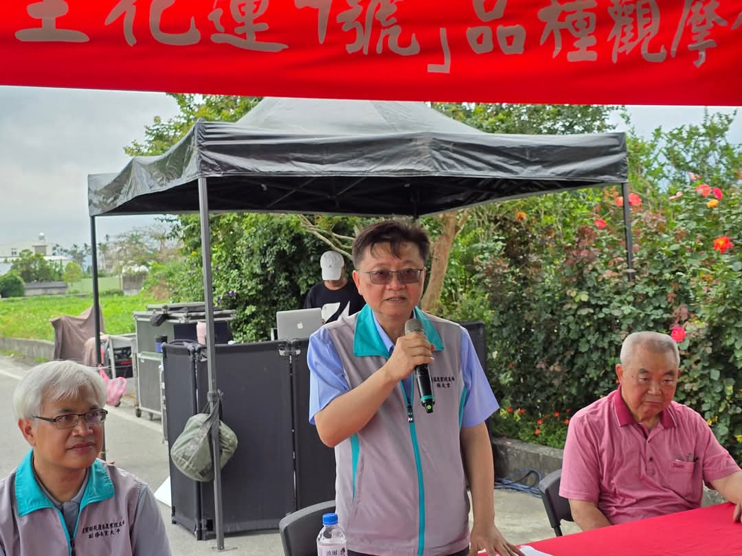花蓮區農業改良場今(6日)舉行的現場品種觀摩會,助理研究員吳杰儒解說,花蓮1號至花蓮7號的宣草特性與品種。他說,花蓮一號粉佳人,花蕊粉嫩柔美,開花期早,可二次開花,每年4月上旬開花。