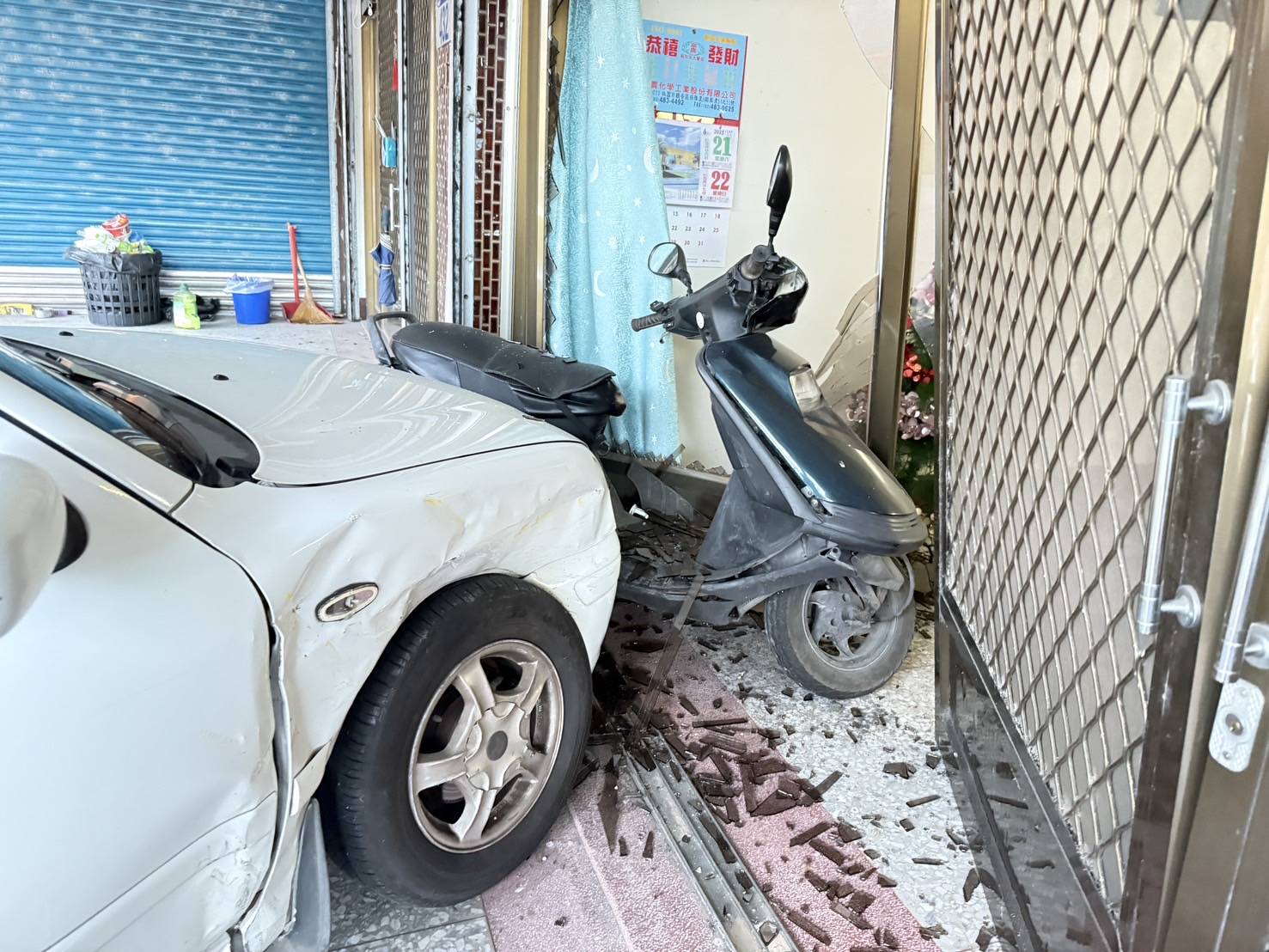 瑞穗鄉中山路二段與仁愛路口日前發生交通事故,郭姓駕駛自用小客車由沿花62鄉道南往北行駛,賴姓駕駛營業用計程車沿中山路3段東向西行駛,普通重型機車陳姓車主靜止停於中山路二段32號,郭姓與賴姓駕駛於中山路2段與仁愛路口發生擦撞,郭姓駕駛遭撞後其車波及至普通重型機車及高姓民眾所有之房舍,現場郭姓駕駛臉部顴骨受傷就醫,郭姓、賴姓駕駛酒測均為0,全案依A2交通事故處理。