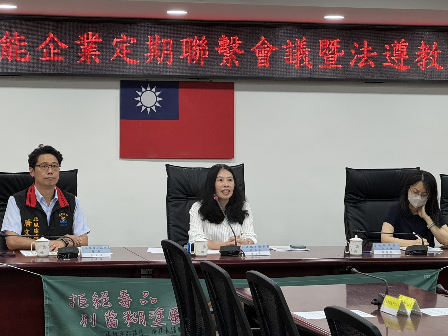 臺灣花蓮地方檢察署於114年6月26日下午舉辦「轄內綠能企業定期聯繫會議」暨「綠能法遵教育訓練」,本次會議由臺灣花蓮地方檢察署陳佳秀檢察長主持,邀集法務部調查局東部機動工作站、花蓮縣調查站、花蓮縣警察局、花蓮縣政府政風處、觀光處、台電公司花蓮區營業處,以及花蓮轄區內16家大型綠能企業,並同時邀請公務機關涉及綠能業務及綠能申設審查業務之人員共同與會,強化各執法機關與綠能企業之聯繫,同時提升綠能審查人員綠能法遵專業。