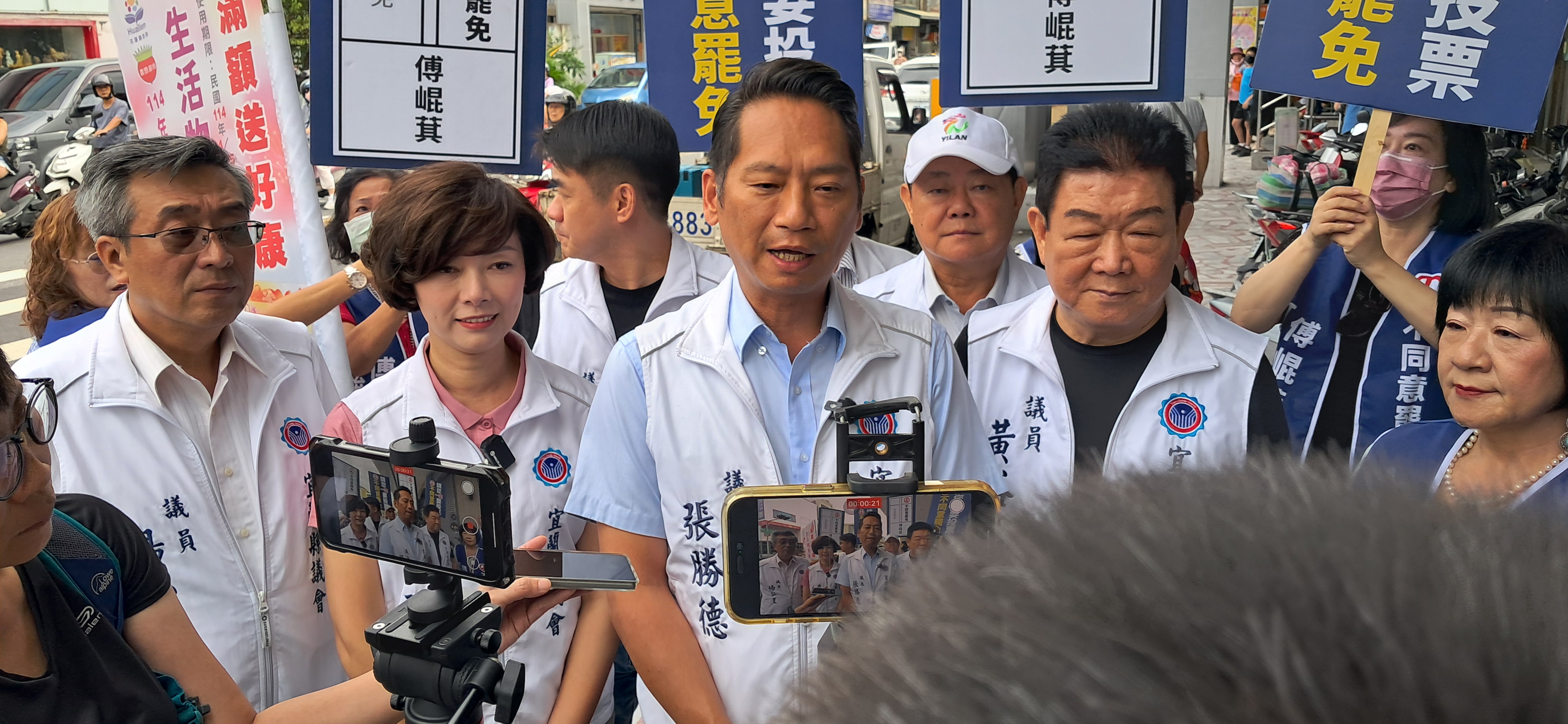 由張勝德議長親自領軍,聯袂宜蘭縣黨團書記長林義剛、黃琤婷、黃浴沂、楊弘旻、黃建勇、林岳賢等多位議員,頂著烈日走訪市場、與攤商與選民面對面交流。宜蘭議會黨團也明白指出:「傅崐萁委員是花東共同的建設推手,更是全台灣地方發展的典範。我們不能接受民進黨用罷免這種政治手段,來報復一位敢於監督中央、為民請命的立委。」