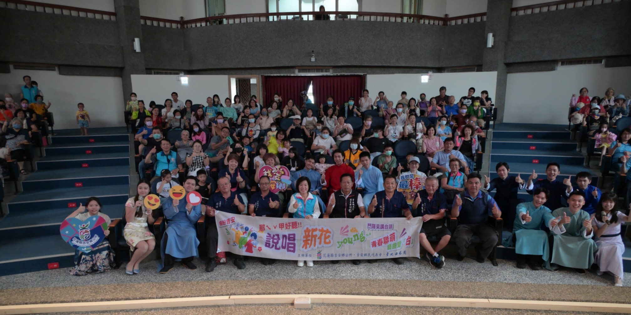吉安鄉公所為推廣「多元母語教育」,暑假期間特別邀請深耕傳統藝術逾三十年的臺北曲藝團,於昨(3)日下午在阿美族文化館舉辦「那ㄟˇ甲好聽!! 繽紛吉安 說唱新花Young」台語推廣相聲暨說唱藝術演出。活動座無虛席,現場觀眾反應熱烈。鄉長游淑貞、鄉代會副主席黃金發、代表詹益萬及多位村長也親臨觀賞,與鄉親一同在笑聲中度過一場富有文化與教育意涵的夏日午後。