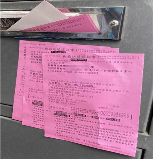 稅務局說明,郵局辦理寄存送達,會製作寄存送達通知書2份,1份黏貼於住居所門首,另1份放置於信箱,民眾如果發現家門口或信箱有郵局的寄存送達通知書時,請務必儘速前往郵局領取繳款書並依限繳納稅款,民眾若未到郵局領取繳款書,致超過繳納期限仍未繳納者,每逾期3日按滯納稅額加徵1%滯納金,最高可加徵10%,逾30日仍未繳納者,將依法移送法務部行政執行署花蓮分署強制執行。
