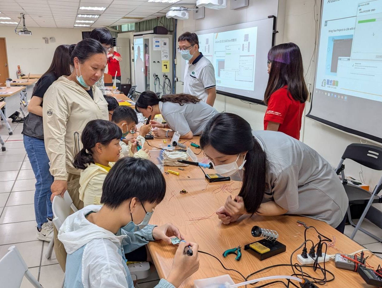 「2025北花蓮AIGO」系列共規劃十個場次,主題涵蓋AIoT智慧家庭、AI職場應用、資訊安全、AI創意設計及AI識詐判讀等多元領域,而在吉安鄉的三場課程獲得空前熱烈報名。首場課程由簡單易懂的「物聯網原理」開場,並搭配實作練習,激發學員對科技的興趣與動手能力。