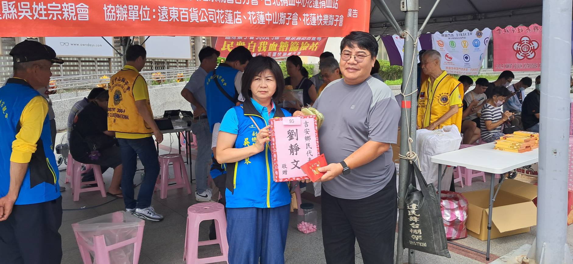 由吳姓宗親會和臺北捐血中心花蓮捐血站聯合主辦,花蓮中山獅子會及花蓮快樂獅子會協辦的捐血活動,今天順利順利進行,這也充分展現了社團間的團結與合作精神。