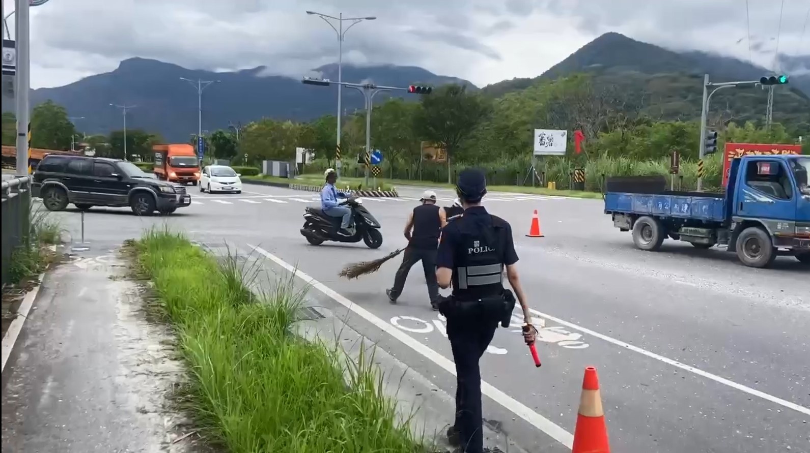 鳳林警分局分局長劉玉祥表示,警察除維持交通秩序、穩定治安外,為民服務亦為工作重點,感謝熱心民眾即時通報派出所員警到場,以避免滿地碎石影響用路人安全。