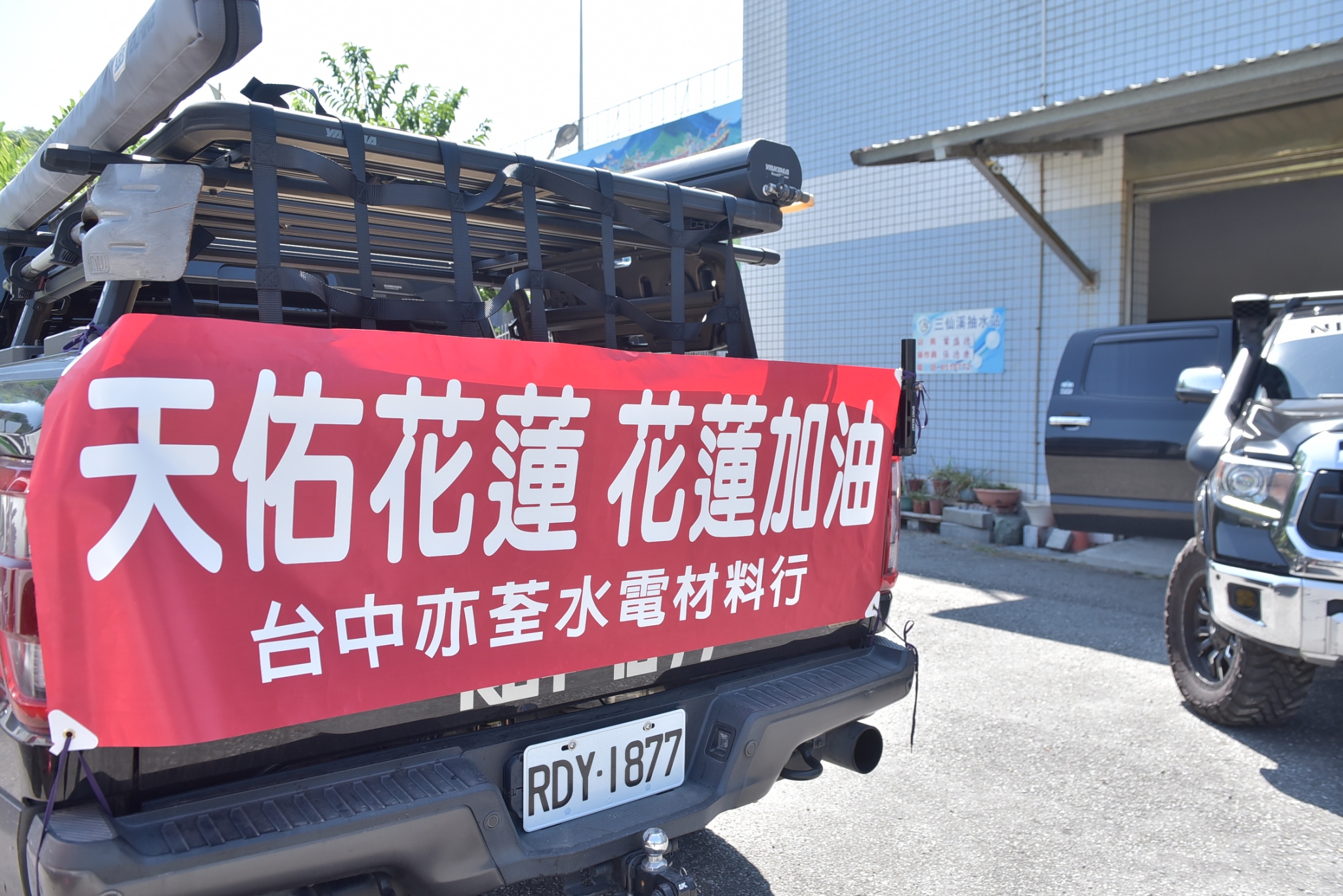 繼日前台中市長盧秀燕秉持「人飢己飢、人溺己溺」精神,率領「家具超人」團隊送來再生家具協助災民後,台中亦荃水電材料行負責人陳義仁與誠偉水電材料行老闆王振崇共同響應,捐贈價值逾百萬元的水電材料,於今(8)日清晨親自派車運送至花蓮,五大台的皮卡滿載各種電器,包含58台抽水機、66台電子穩壓機、100組照明設備及大量插座與開關,這些正是受災家庭最迫切的需求。