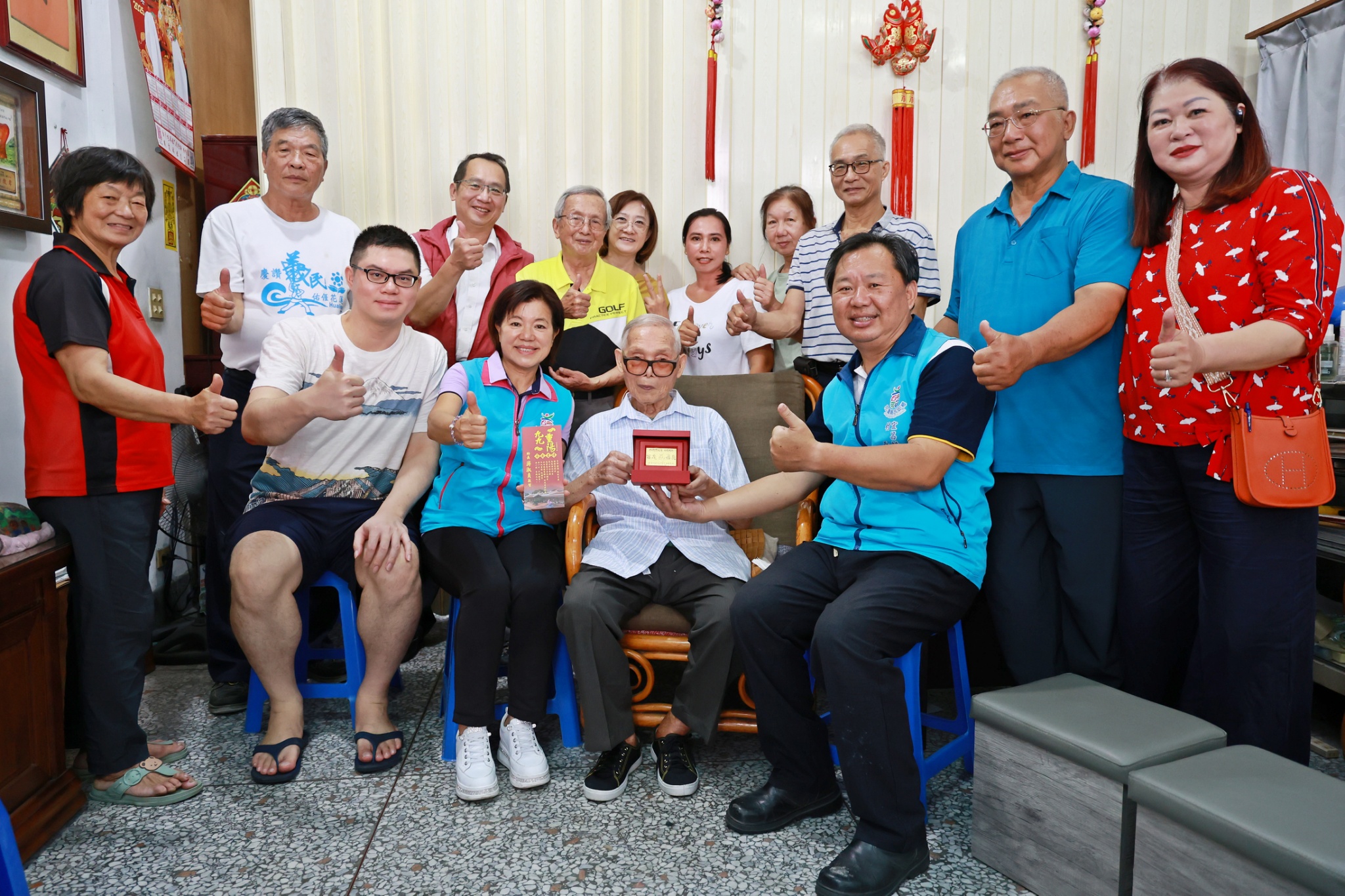 游淑貞表示,感恩長者們篳路藍縷,以青春、智慧與努力成就家庭與社會的卓越與圓滿。她強調,每一面金牌都凝聚著社會的祝賀與敬意,不僅提醒家庭行孝,更啟發社會營造敬老愛老的溫馨氛圍。她也親切叮囑長輩們注意健康飲食,鼓勵多多參與社區活動、到福氣站交朋友,並祝福大家快樂九九、長壽久久!