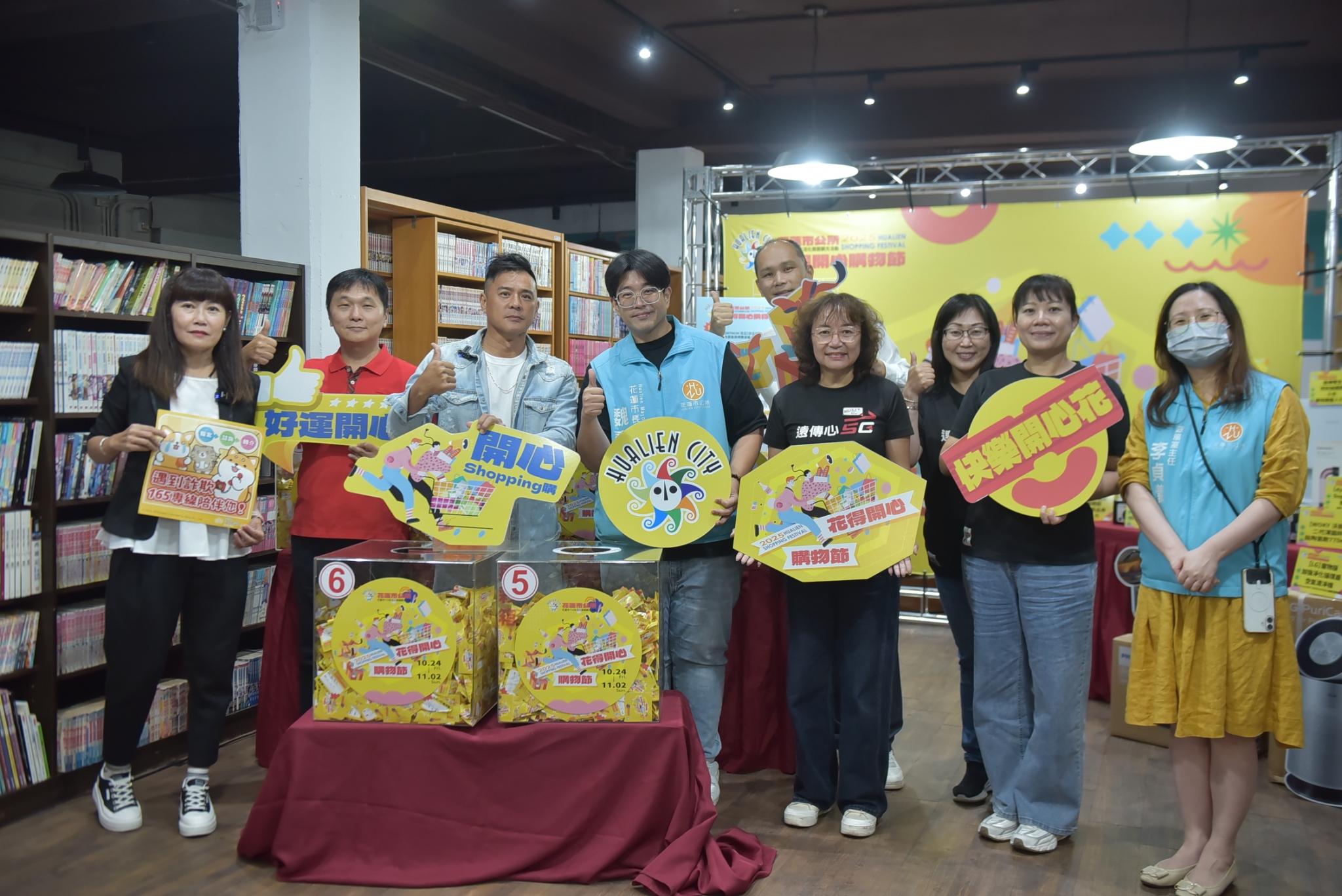 「花得開心購物節」最終場直播抽獎活動昨(5)日晚間登場,魏嘉彥市長偕 2025太平洋緃谷馬拉松代言人竇智孔、花蓮遠東百貨王翔新店長、遠傳電信業務經理高啟文以及市公所政風室主任李貞儀,共同見證頭獎得主抱走市價逾五萬元的烘烤微波爐的驚喜時刻。魏嘉彥表示,感謝大家熱情參與,活動不僅帶動市區商圈買氣,也讓更多人看見花蓮的熱情與魅力。