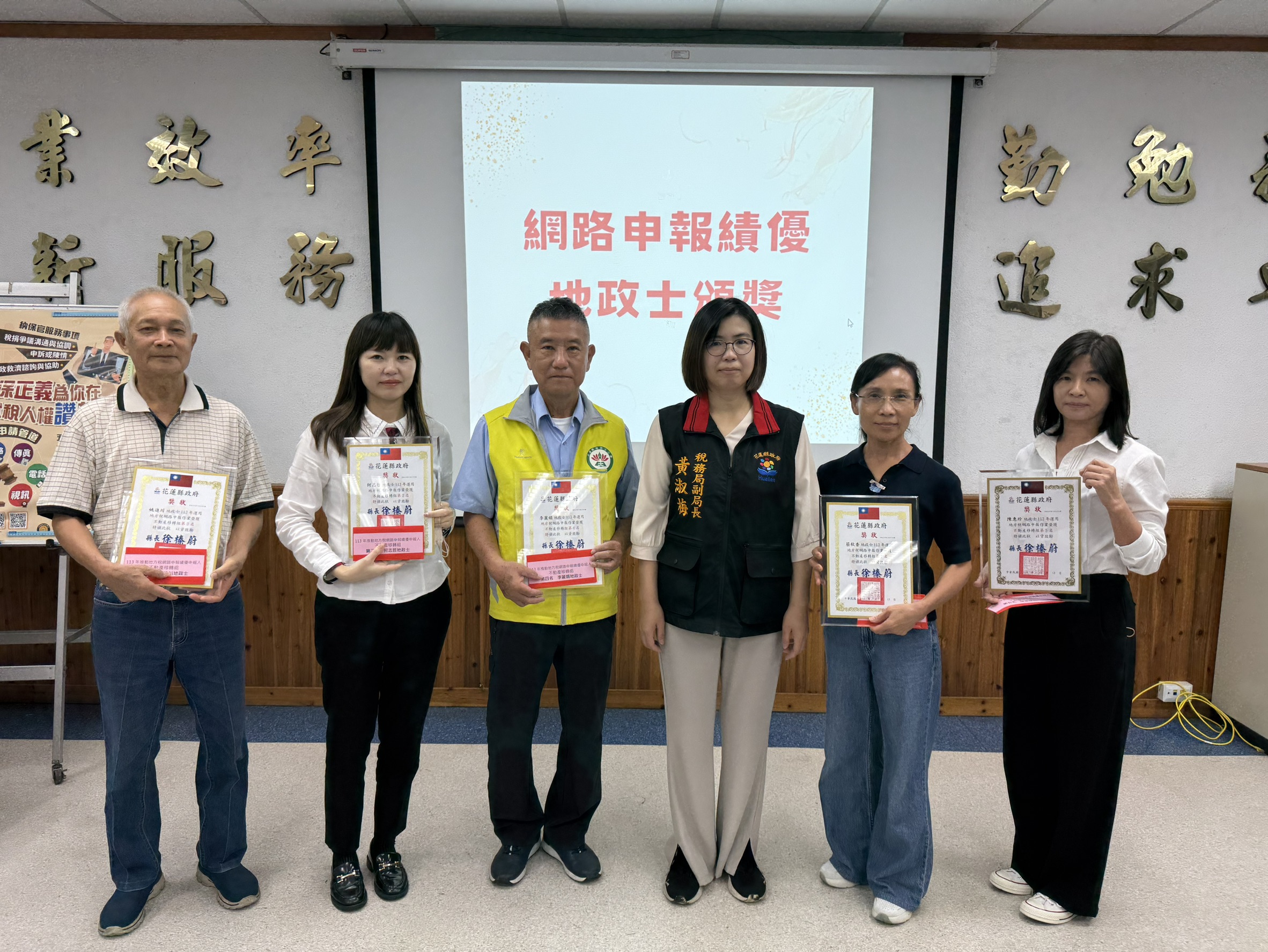 為提升報稅代理人運用網路申報地方稅,以節省寶貴時間及落實以網路替代馬路,花蓮縣地方稅務局於日前,公開表揚113年推動地方稅網路申報績優地政士。該局表示,專業代理人係稽徵機關與民眾最佳之溝通橋梁,而稅務法令常配合稅制稅政修正,為讓地政士瞭解最新稅務法令及增進專業素養,每年均會舉辦專業代理人講習會,並公開表揚績優地政士。