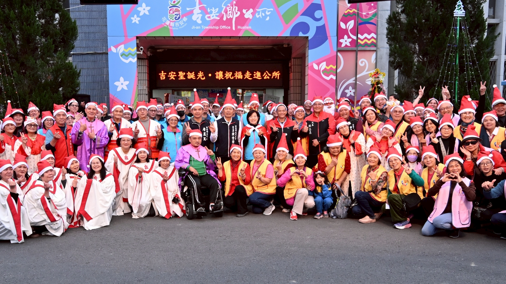 吉安鄉公所(22)日舉辦「吉安聖誕光・讓祝福走進公所」報佳音活動,邀集十所教會及數百位鄉親齊聚公所門口,以歌聲祝禱傳遞平安與祝福。鄉長游淑貞偕鄉民代表會副主席黃金發、代表林志忠、余震華、詹益萬,以及各部落頭目與長老們到場參與,共同見證這場溫馨的聖誕節慶。透過報佳音、唱聖歌形式,展現吉安鄉多元文化彼此尊重、共融共好的精神。