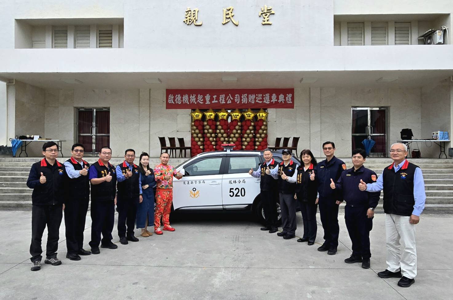 花蓮縣日前受連日強降雨影響,光復鄉馬太鞍溪發生潰堤,造成周邊地區淹水及公共設施受損,鳳林分局一部巡邏車也遭無情洪水沖毀,但巡邏車無論是在治安維護、交通執法、偏鄉巡查,或天災時投入救援、通報及安全警戒,均屬執行任務重要裝備,胡漢龑董事長得知基層警政及救災勤務實際需求後,即公開承諾捐贈巡邏車,以實際行動支持地方治安與防災工作。