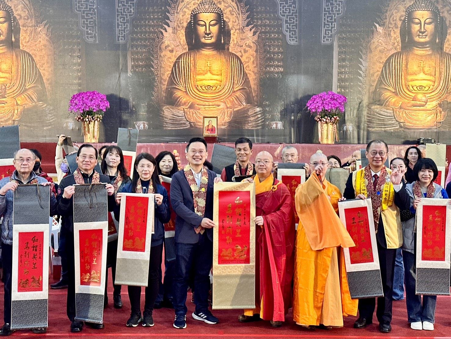 今日出席貴賓包括立法委員萬美玲、魯明哲,桃園市議員林政賢、陳美梅、黃婉如、張碩芳、楊朝偉,社會局長陳寶民、民政局副局長藍品畯,前桃園縣長吳志揚伉儷、桃園信用合作社理事主席蘇家明,以及桃園區長許敏松、中壢區長李日強、蘆竹區長李岳壇、平鎮區長蕭巧如、八德區長蔡豊展、龜山區長張嘉平、大園區長余誌松等人,並與佛光山宗長心保和尚、佛光山桃園講堂住持覺元法師等共同與會。