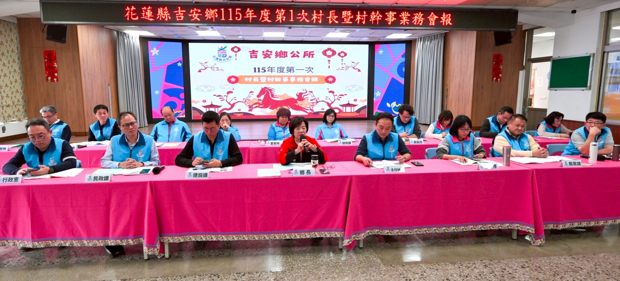 吉安鄉公所定期村長暨村幹事業務會報,昨(30)日召開,由鄉長游淑貞親自主持,率領各課室所主管,與全鄉19村村長、村幹事齊聚一堂,針對施政進度、回應在地需求,凝聚鄉政推動共識。