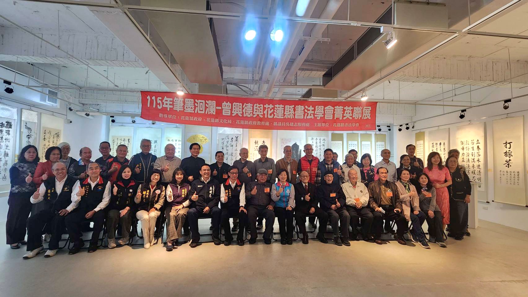 「筆墨洄瀾—曾興德與花蓮縣書法學會菁英聯展」於花蓮美術館D展覽廳盛大開幕,現場匯聚地方藝文界人士與鄉親好友,共同見證花蓮書法藝術的成果展現。花蓮縣議員吳建志受邀出席開幕典禮時表示,書法不僅是傳統藝術形式,更是文化精神的延續與城市氣質的展現。