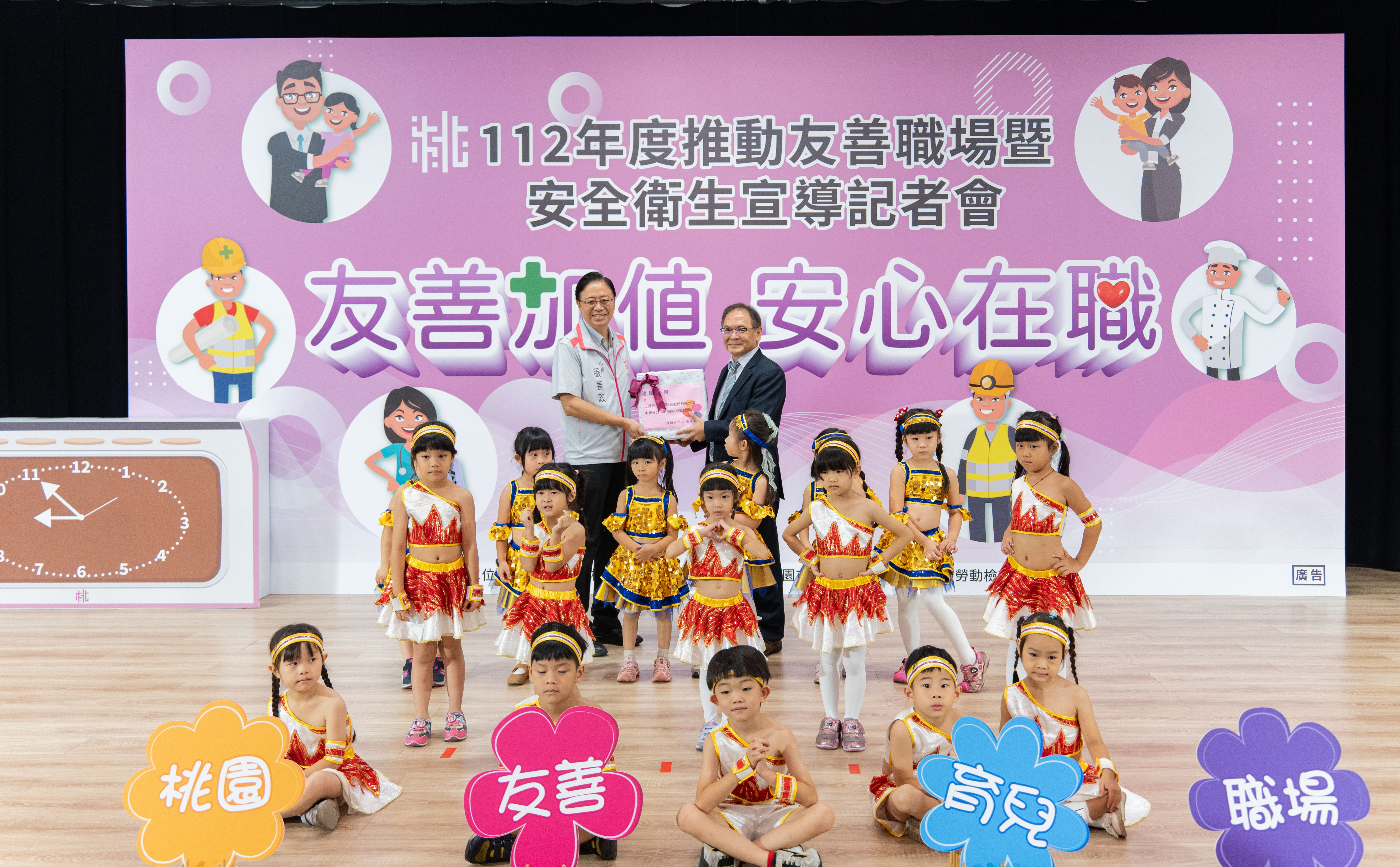 李局長指出,為營造勞工母性保護與就業平權並推廣友善育兒職場,桃園市自108年全國首創「母性健康保護守護聯盟-模範事業單位選拔」,今(112)年獲獎單位為鴻佰科技股份有限公司、中華電信股份有限公司桃園營運處、神達電腦股份有限公司等3家事業單位;未來市府將持續補助及獎勵企業友善育兒職場措施,今年勞動局更結合社會局、教育局及學者專家組成專家輔導團,入場輔導事業單位設置托兒設施,並辦理友善職場講座及論壇分享經驗。
