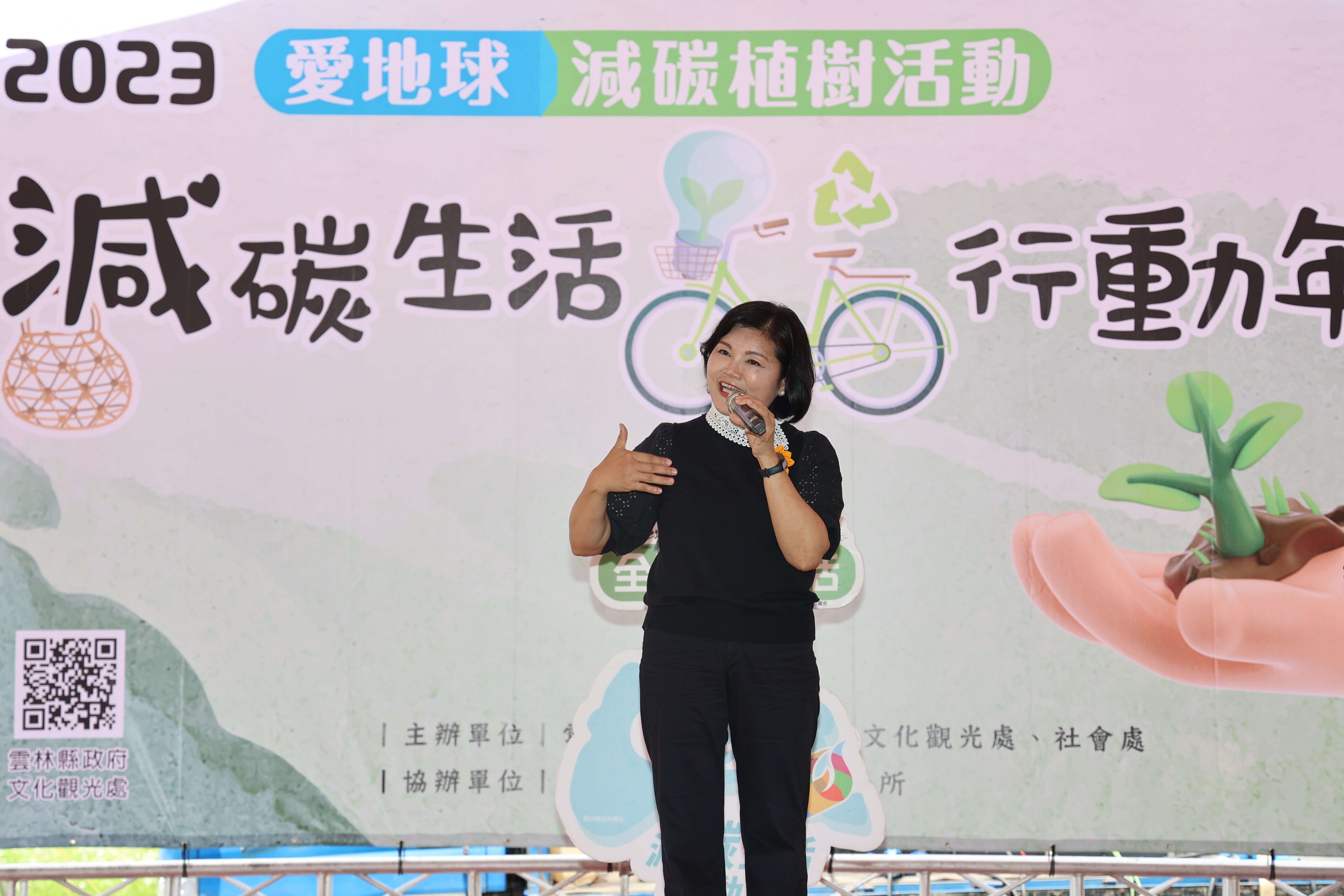 社會處林文志處長表示,雲林縣政府將今年2023訂為「減碳行動生活行動年」,從今年3月起響應植樹節舉辦百人植樹活動,邀請鄉親「愛地球就從種樹開始」、『減碳生活行動就從種樹開始』。