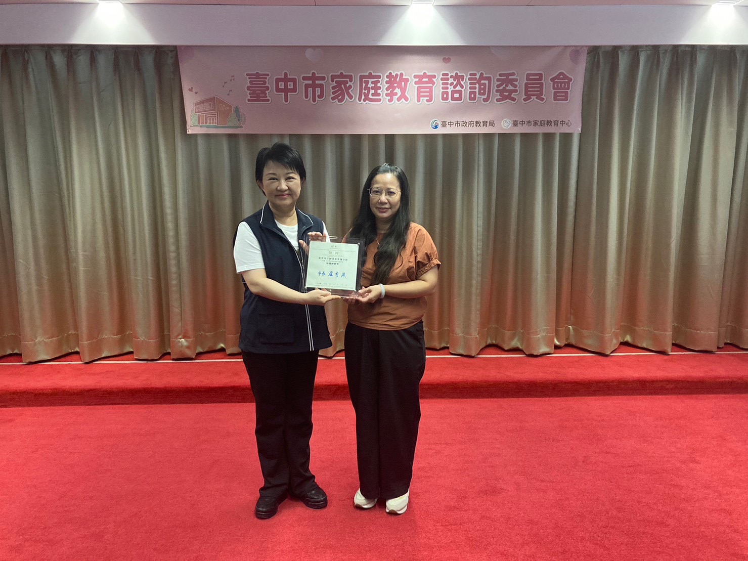 教育局長蔣偉民表示,盧市長相當重視家庭教育,她也是家庭教育諮詢委員會的主任委員,常常聆聽委員建議,主動走進民眾生活推廣家庭教育的重要性,也是政府部門努力的方向,此次推展家庭教育績優團體獎獲獎單位有台中市立圖書館外埔分館及豐原分館,績優志工個人獎為台中市家庭教育中心志工廖文輝先生、陳秀麗、陳秋萍及周靖雁女士,盧市長的授獎及鼓勵無疑是最大的支持與殊榮。