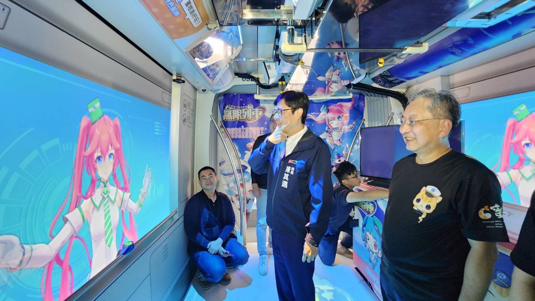 高雄捷運公司21日於輕軌前鎮機廠舉辦全台首輛5G沈浸式列車啟用儀式,在高雄市經濟發展局的媒合輔導下,成功爭取經濟部工業局「高雄亞洲新灣區 5G AIoT 創新應用補助計畫」,此次與方陣聯合數位科技股份有限公司及佳駿科技股份有限公司合作,融合5G沉浸式體驗、5G虛擬IP互動導覽和元宇宙互動遊戲,打造「全國首創5G沉浸式展演車廂」,不僅讓乘客享受一種嶄新的乘車體驗,同時達到推廣5G AIoT 技術的應用效果,這台「蜜柑號」未來在輕軌C1籬仔內站至C14哈瑪星站為期六個月的試營運,將持續投入資源優化軟硬體,發展更多創新營運模式。