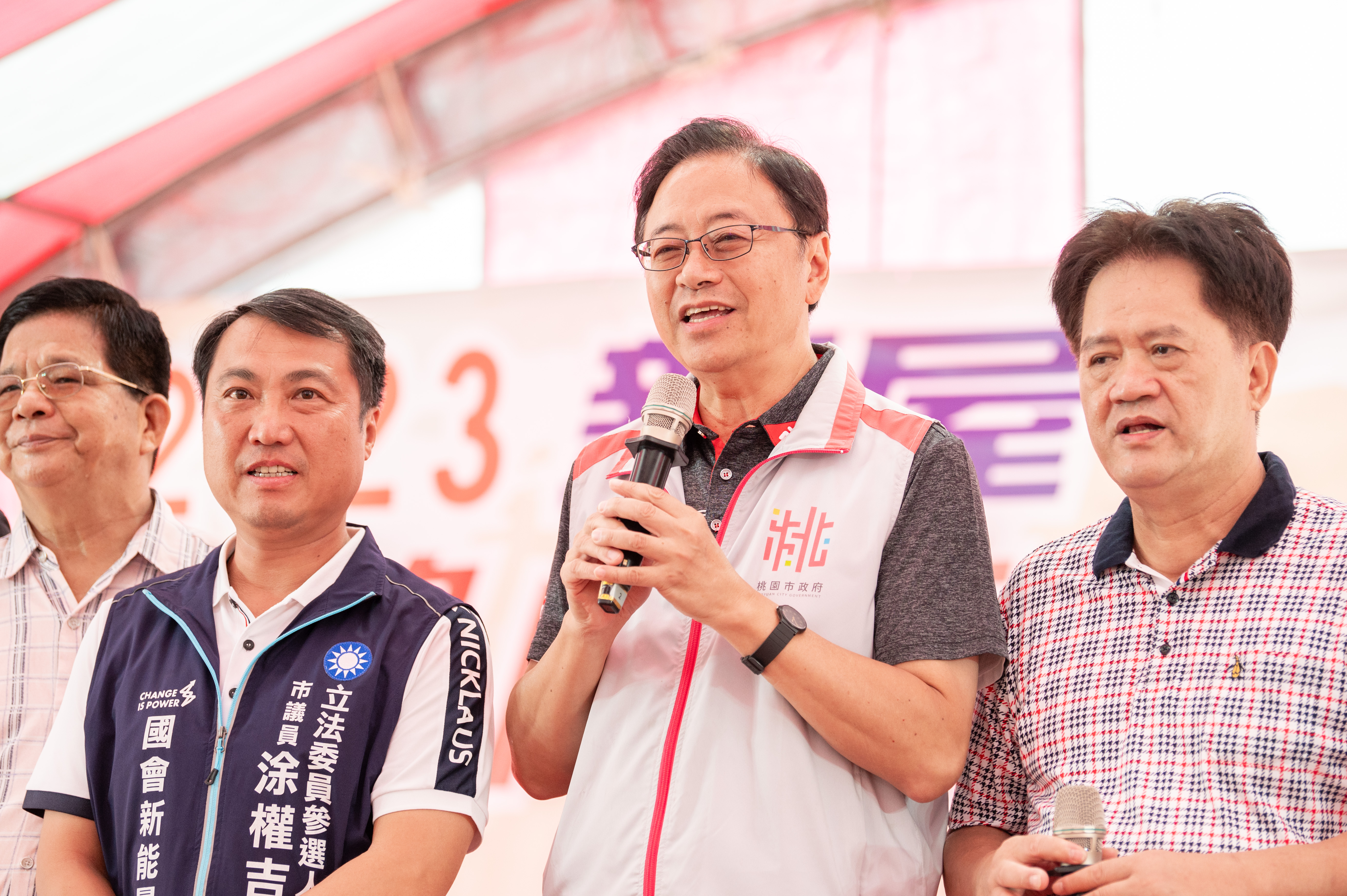 14日包括立法委員黃世杰、市議員涂權吉、陳睿生、市府農業局長陳冠義、民政局長劉思遠、新屋區長鄭詩鈿、昭靈宮主委許義鉅、桃園市農會理事長李文政、新屋區農會理事長姜義青、桃園區農會理事長吳德富、大園區農會總幹事呂理標等均一同出席活動。