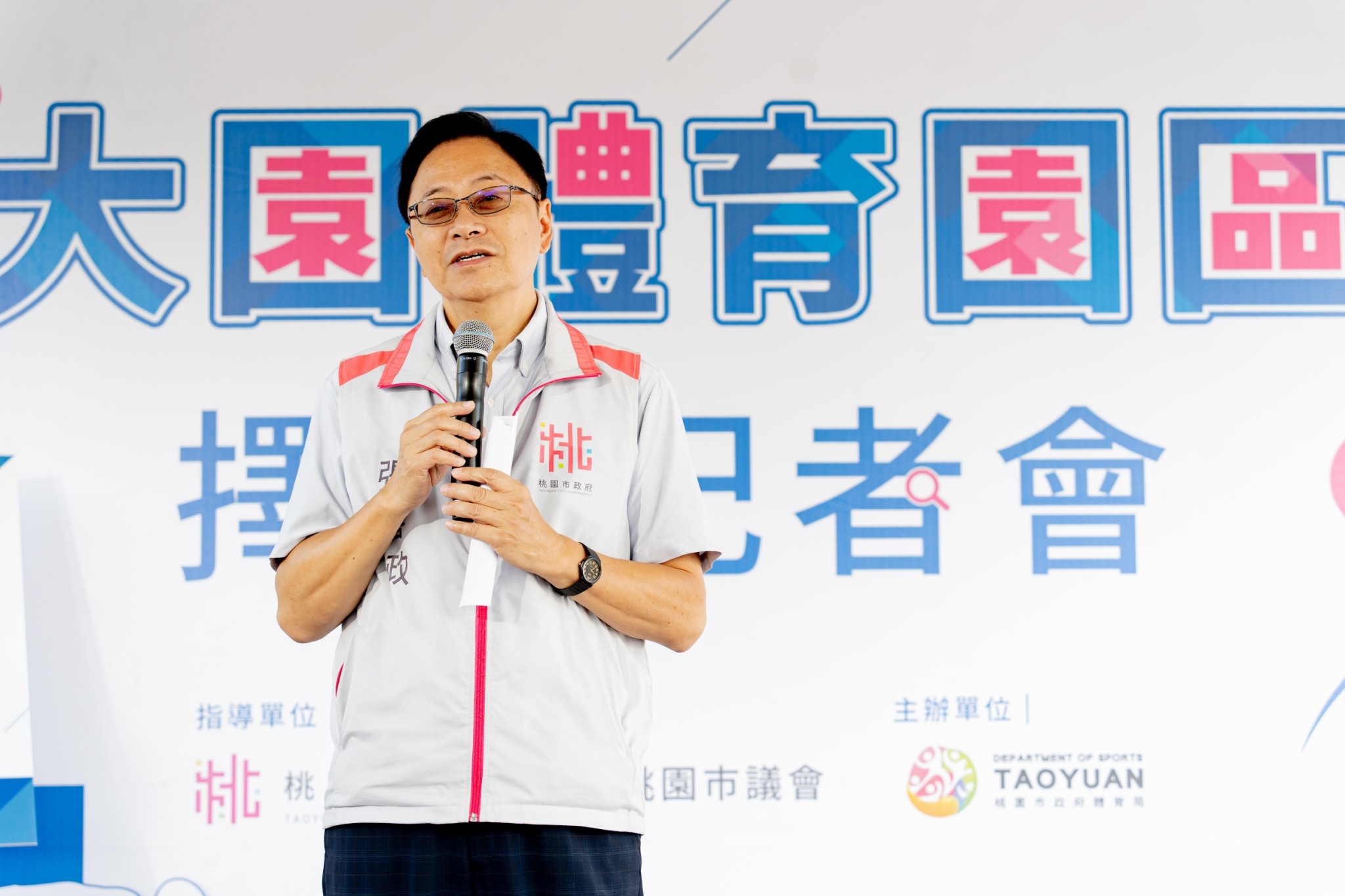 桃園市長張善政24日上午前往大園區,出席「桃園市大園體育園區擇址記者會」。張市長表示,近期觀音國民運動中心、楊梅體育園區都剛啟用,在試營運期間免費開放入場,鄉親反應皆相當熱烈。目前全市共規劃5大體育園區、12座國民運動中心,並已完成龍潭體育園區及楊梅體育園區的興建,在大園區也規劃設置大園體育園區,正著手進行規劃設計的前置作業,預計打造設有溫水游泳池、SPA等設施的地上3層、地下1層建築物,並選定在地鄉親支持的客運園區公一公園作為基地,希望拚114年發包動工,未來除了鄉親能就近使用,周邊大園國小、潮音國小、大園國中的孩子也能來此培養運動習慣及體能。