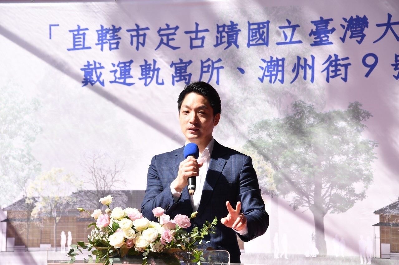 臺北市長蔣萬安於3日出席「直轄市定古蹟『國立臺灣大學日式宿舍』-工鑿榫祈福典禮」,他在典禮上表示,很高興參加「直轄市定古蹟國立臺灣大學日式宿舍—戴運軌寓所、潮州街9號修復工程」開工祈福典禮,他認為今天是一個歷史性的時刻,並表達了對臺大、文資委員、建築師以及所有參與的合作夥伴的感激之情。他強調這是大家共同努力的成果,使文化資產修復工程得以正式啟動。