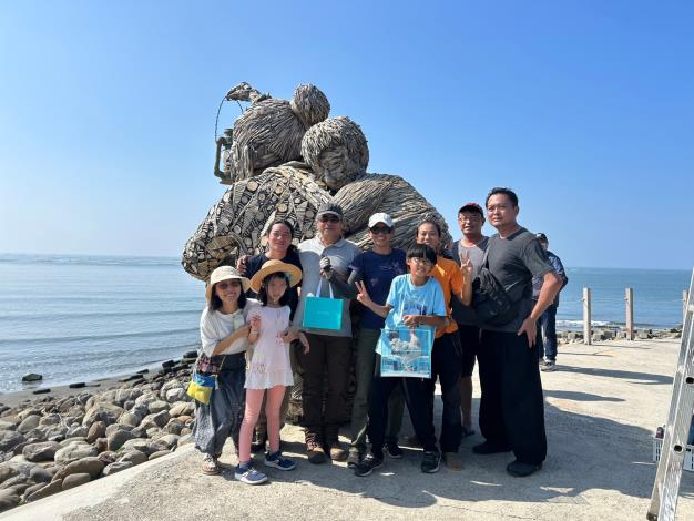 台江建庄二百年「開江紀」戶外藝術裝置大展圓滿落幕,佳評如潮。其中備受矚目的「台江阿嬤」,即范志明創作的「吾海吾江」,更獲廣泛回響。日前展期雖至,臺南市文化局特別與作者討論採現地維護延展,讓阿嬤多陪伴全國民眾一個月。昨(5)創作者范志明團隊已完成卸展,文化局亦派員到場致贈台江文化中心建館紀念品,表達對作者的感謝。現場也許多民眾依依不捨,與作者和「台江阿嬤」合影留念。