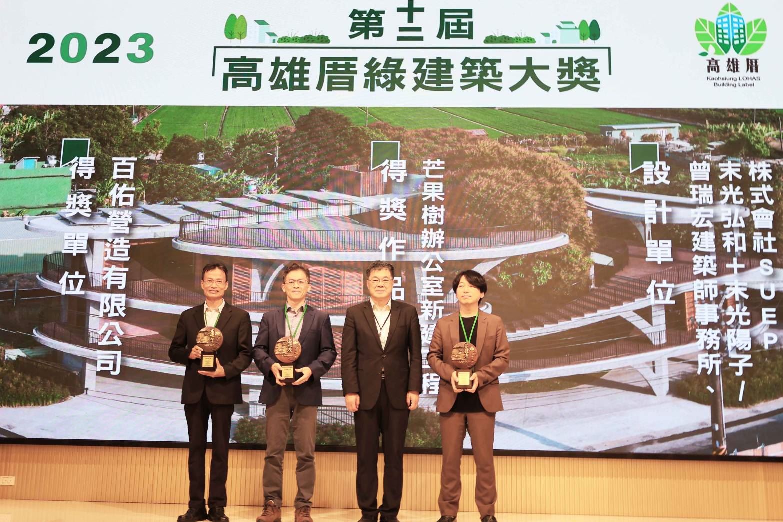 另外,「綠建築大獎」今年度總共選出20件優良作品,評審團大獎由芒果樹辦公室新建工程獲得,是一座以老欉芒果樹為主體,以負能耗為目標的建築,其他優選作品包括民間參與高雄市臨海汙水處理廠暨放流水回收再利用BTO計畫、黃重魁建築師事務所-魁建築、城揚建設-美廳苑、仰德建設-仰德 灣、京城建設-馥の森、永信建設-禾豐、隆大營建-鳳凰頌、光洲集團-光洲耘朗、光洲集團-光洲耘海、京成建設-森遠、吉松建設-青曦流域、多城國際-多城市I、福懋-沐氧森、學院建設-學院 美術之星、歐美建設-森青道、汯岳建設-悅讀平均綠、光洲集團-光之匯、銳揚建設-天鵝堡及崑郡建設-棋琴文川苑。