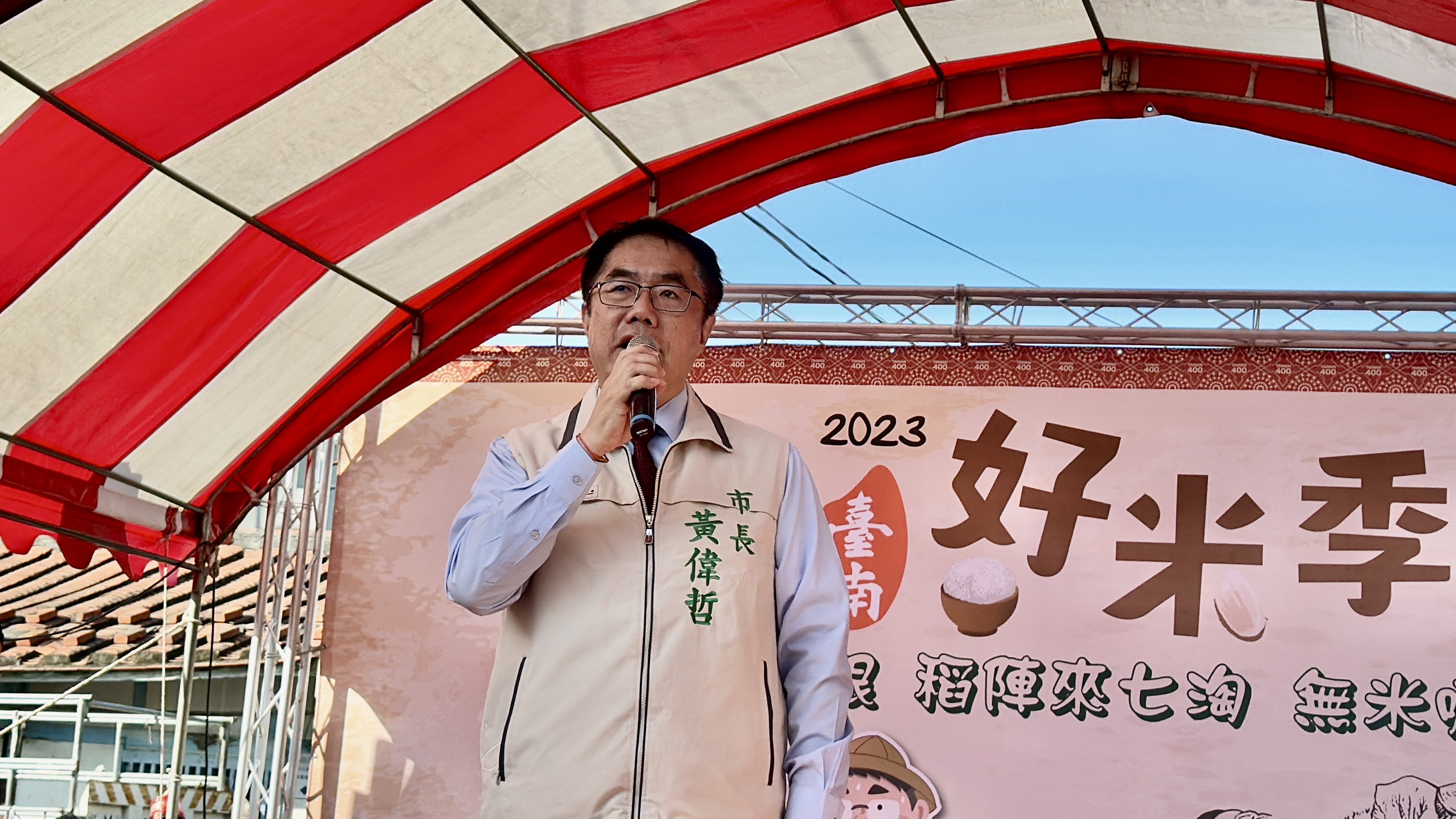 2023台南好米季於11日在後壁菁寮老街登場,台南市長黃偉哲下午出席開幕儀式致詞表示,後壁是魚米之鄉,更是嘉南平原的大糧倉,生產的稻米品質優良,甚至可以外銷到以生產好吃白米聞名的日本市場,非常不簡單。現在水庫水量充沛,農業可以正常灌溉,期待未來有更多好米提供大家享用。