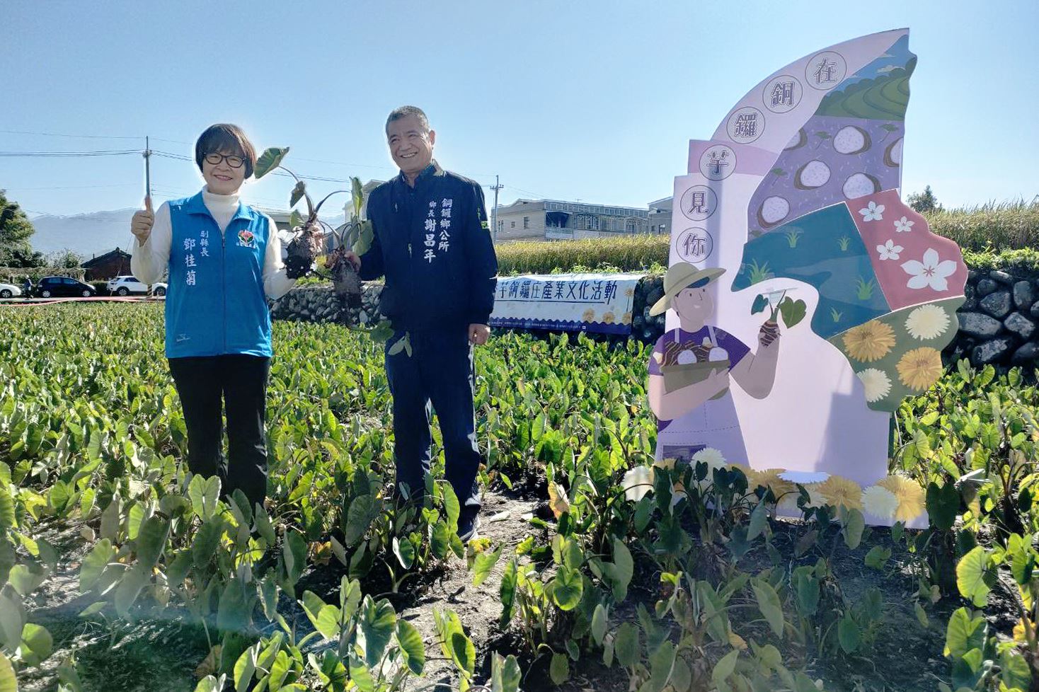 副縣長鄧桂菊與秘書長陳斌山分頭到銅鑼和公館,代表縣長鍾東錦表達對休閒農業、農特產品行銷及觀光產業的關心。鄧桂菊偕同銅鑼鄉長謝昌年及各界來賓,推薦大家品嘗芋頭料理、觀賞杭菊花海的小旅行,選購在地農特產品,她還下田與遊客體驗採收芋頭的農村生活,一起參加芋圓DIY與親子同樂;公所亦安排2輛接駁車從火車站接送遊客飽覽美麗的杭菊花海。