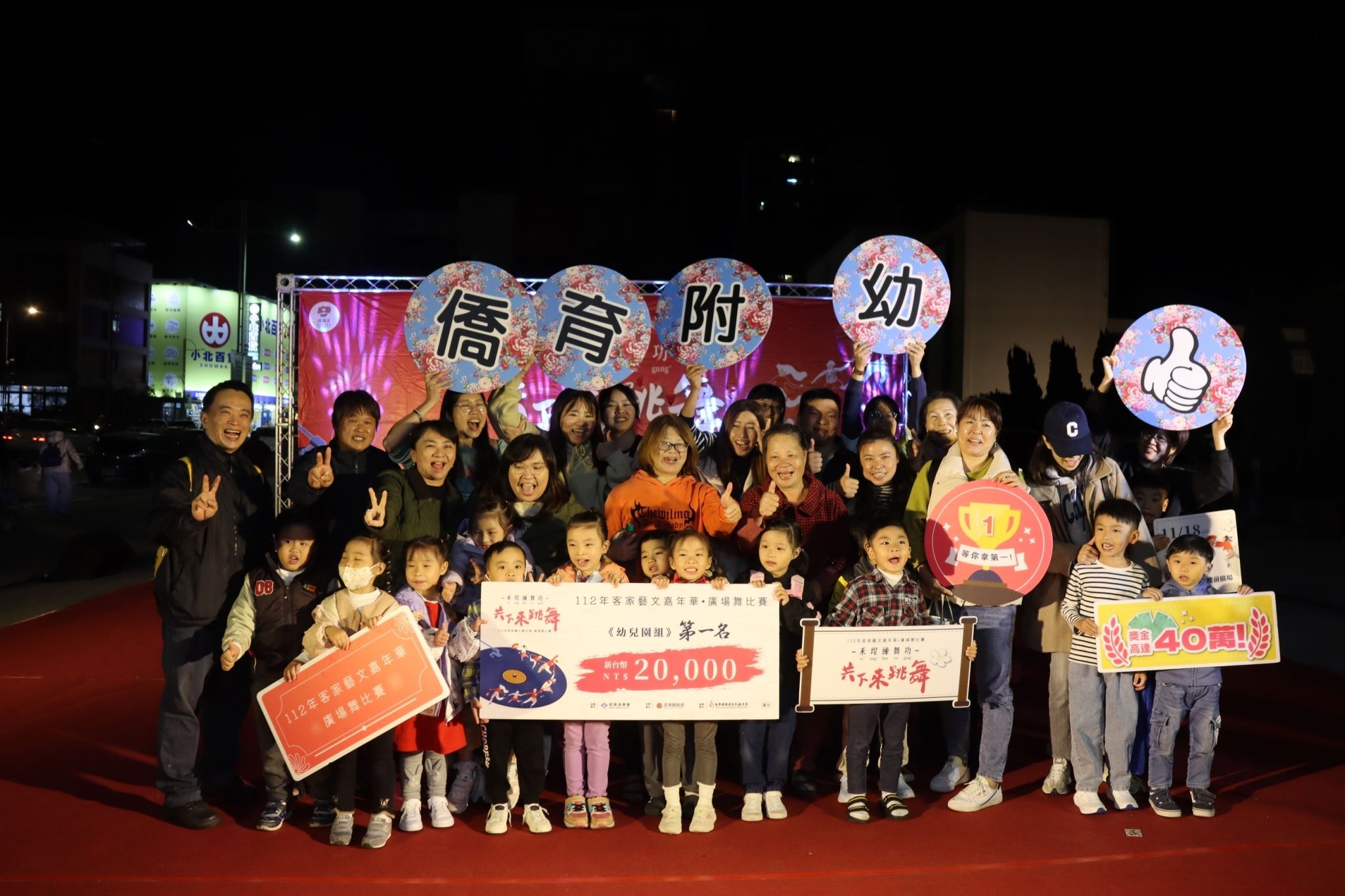 苗栗縣政府11月18、19日在縣政府第一辦公大樓前廣場舉辦「112年客家藝文嘉年華-廣場舞比賽」活動,經過兩天激烈競賽,結果幼兒園組由僑育國小附設幼兒園/僑育小小兵、學生組由苗栗縣竹南國小、社會組由開心廣場舞打頭名。