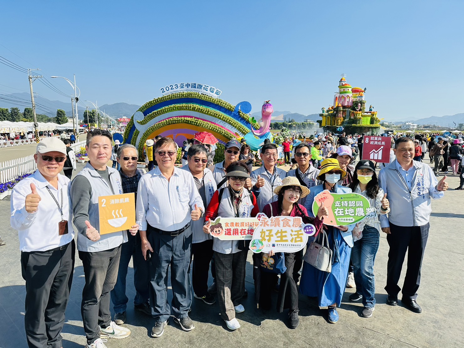 睽違2年的新社花海,今年再度與台中國際花毯節合體,11月11日開展以來參觀人次屢創新高,預計這周可突破200萬人次,台中市政府客家事務委員會也特將今年度最後一次的委員會議移師至新社區農會召開,大力行銷台中購物節、市民野餐日及新社花海暨台中國際花毯節。在委員會開會前,市府客委會副主委魏瑞伸也率市府同仁及委員會委員前往參訪,用行動支持市府所辦活動,並促進山城地區經濟產業消費。