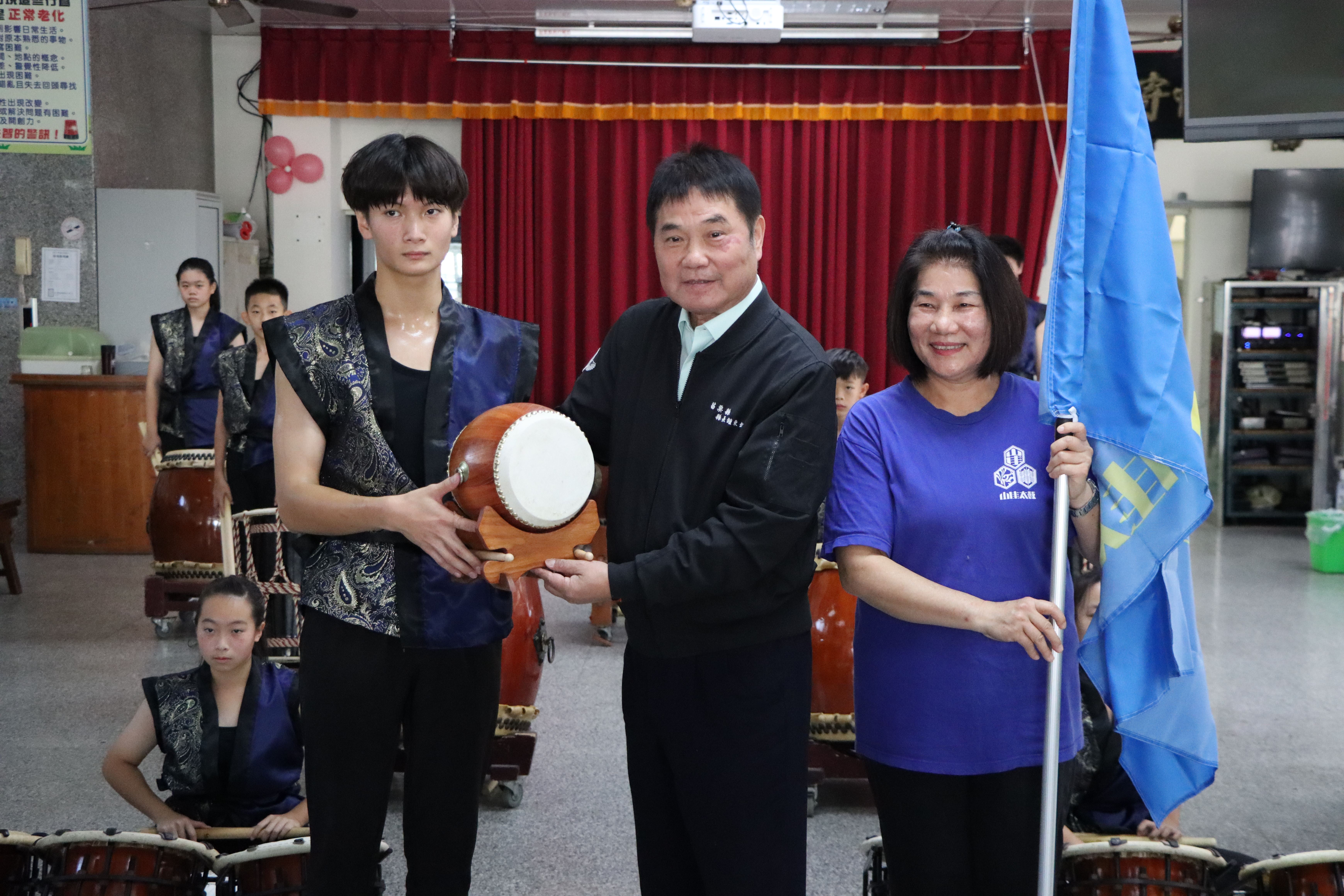 山佳太鼓團赴日參加太鼓少年大賽 縣長鍾東錦授旗勉勵