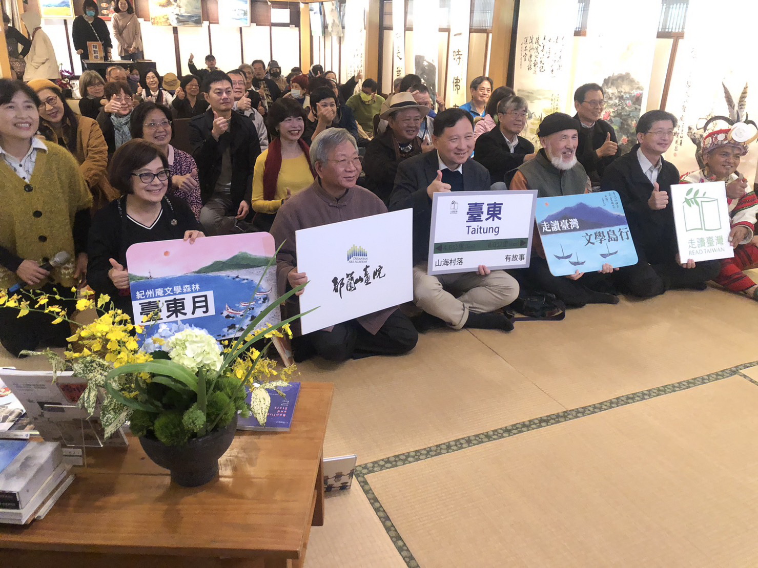 「臺東:山海村落有故事」臺東月文學講座暨市集開幕活動記者會,於中午12點30分展開,臺東縣政府王志輝副縣長代表饒縣長出席,並與林永發、孫大川、李賢文、莊坤良、李國坤、林炎煌、廖光亮、詹澈、素素、歐陽穎華、臺東縣政府文化處李吉崇處長等多位來自臺東多位知名的生活創作者以及文人與談,從不同的面向,跟大家一起探索臺東的改變軌跡。