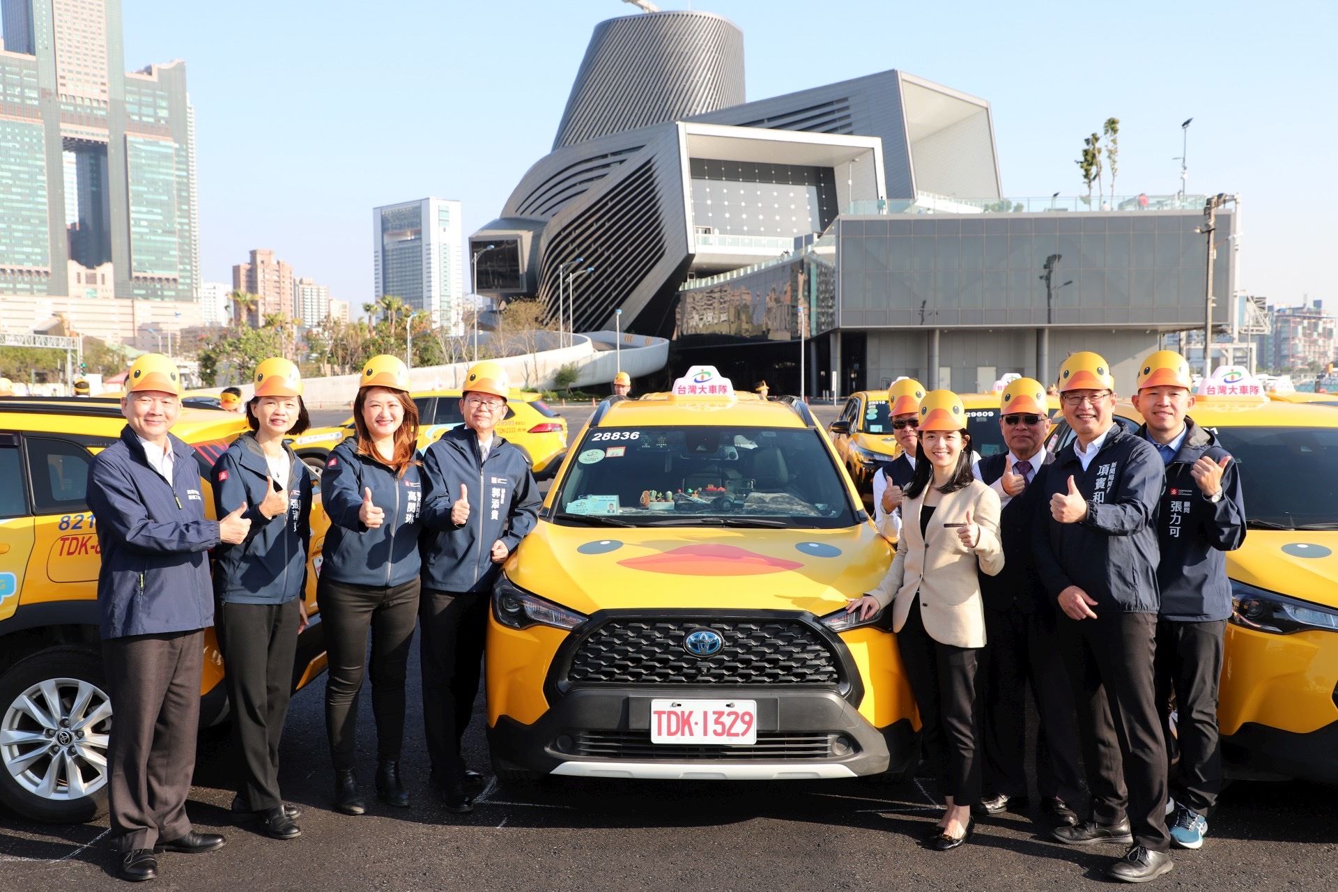 睽違10年,黃色小鴨重返高雄消息一出,城市街角隨即引起黃色旋風!高雄市政府與55688集團攜手合作,將穿梭高雄街道巷弄的小黃計程車,搖身一變,車身及車頭貼上可愛小鴨圖樣,帶給市民朋友驚喜。4日記者會由31輛台灣大車隊計程車於愛河灣排列成10Y圖案,象徵亞灣10年高雄蛻變,市府秘書長郭添貴細數高雄10年推動城市轉型與地景風貌的變化,不僅輕軌成圓試營運,高雄展覽館、高雄市立圖書館總館、高雄港旅運中心到高雄流行音樂中心,蛻變有目共睹。