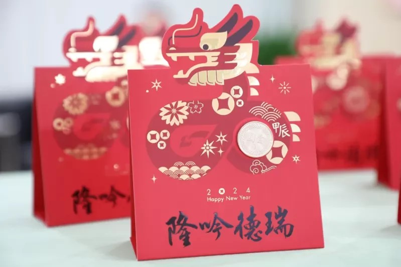 基隆市議會議長童子瑋、副議長楊秀玉也公布基隆市議會的龍年春聯、1元開運金與紅包袋。童子瑋表示,今年是甲辰金龍年,更是從1924年基隆升格為「市」100周年,主題「隆吟德瑞」有讓基隆大展鴻圖之意相當有意義,1元開運金特別送到慶安宮祈福加持。