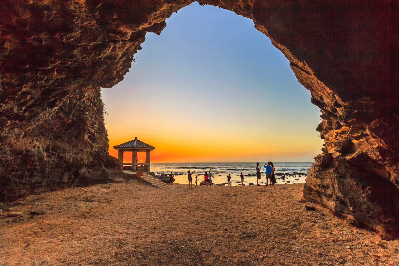 來到新北市石門區,除首選富基漁港嚐海味外,另一處最夯的人氣景點就是石門洞,這裡是石門區的著名地標,也是「石門區」名稱的由來。百萬年前大屯火山群噴發後沖刷到海岸邊的岩層,長期日積月累受到海水侵蝕,後來經過地面抬升,形成一個約十多公尺高的天然「海蝕拱門」,非常壯觀!而石門洞兩側各有一個景觀平台,能360度遠眺海岸美景!其右前方還有一座白色情人橋,是情侶最佳觀浪與聽浪處,白色的拱橋連接兩座海蝕平台,情侶在橋上欣賞海浪在橋底衝起的浪花,聆聽海浪拍打橋底的浪潮聲,享受兩人浪漫時光。