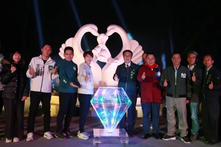 台南藝文新品牌華麗登場!首屆「新營波光節」昨日開幕,台南市長黃偉哲與立法委員陳亭妃,以及市議員蔡育輝、李宗翰、趙昆原、王宣貿等各界貴賓一起為活動啟燈,讓天鵝湖的美景錦上添花,增添一抹新的光彩。