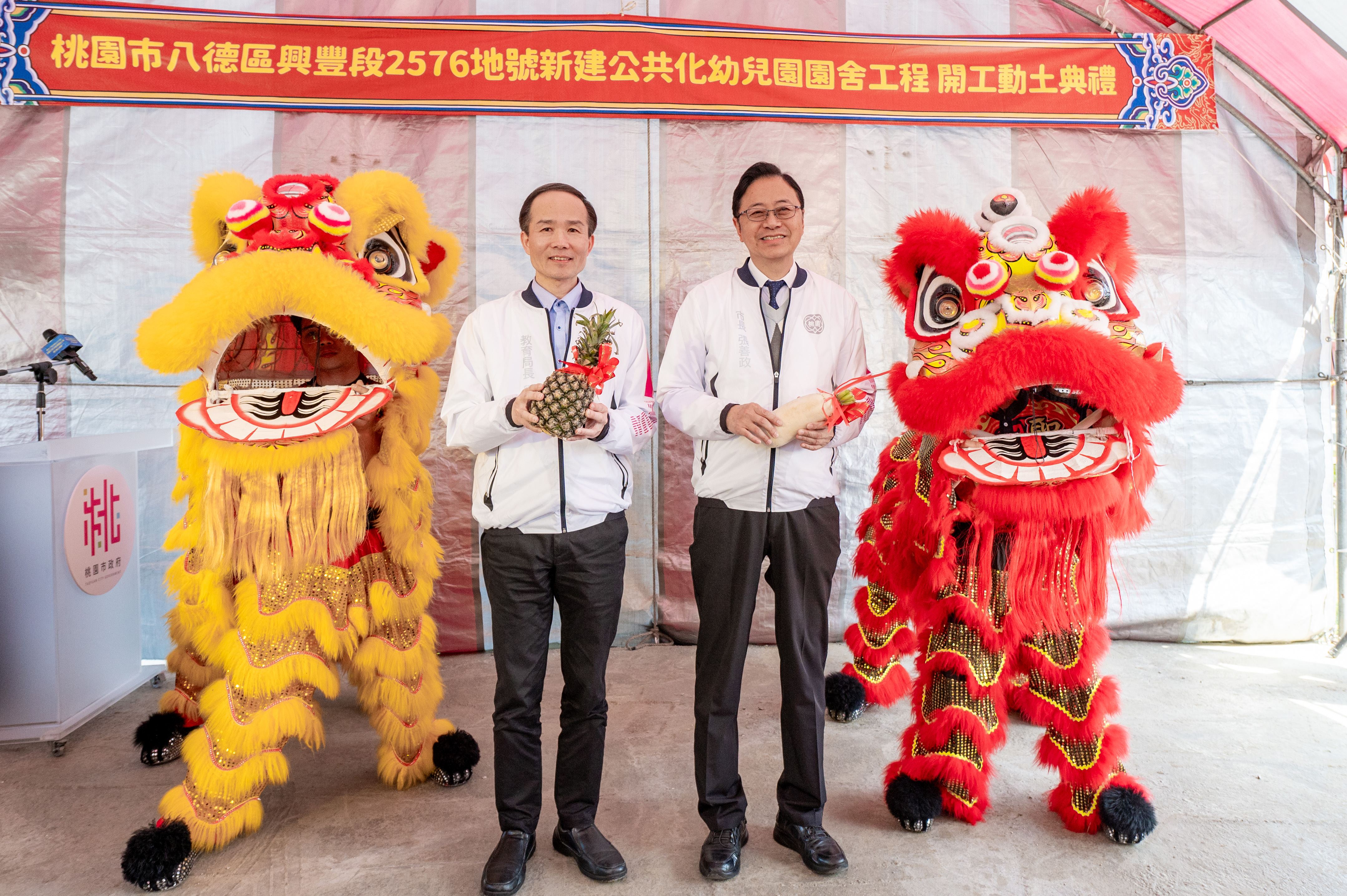 桃園市長張善政21日下午前往八德區,出席「桃園市八德區興豐段2576地號新建公共化幼兒園園舍工程」開工動土典禮。張市長表示,八德區是桃園市人口快速成長的區域,移入人口不斷增加,市府特推動仁德非營利幼兒園興建計畫,預計114學年度開始招生,盼工程能如期、如質完工,提供八德幼兒一個安心就學的好環境。