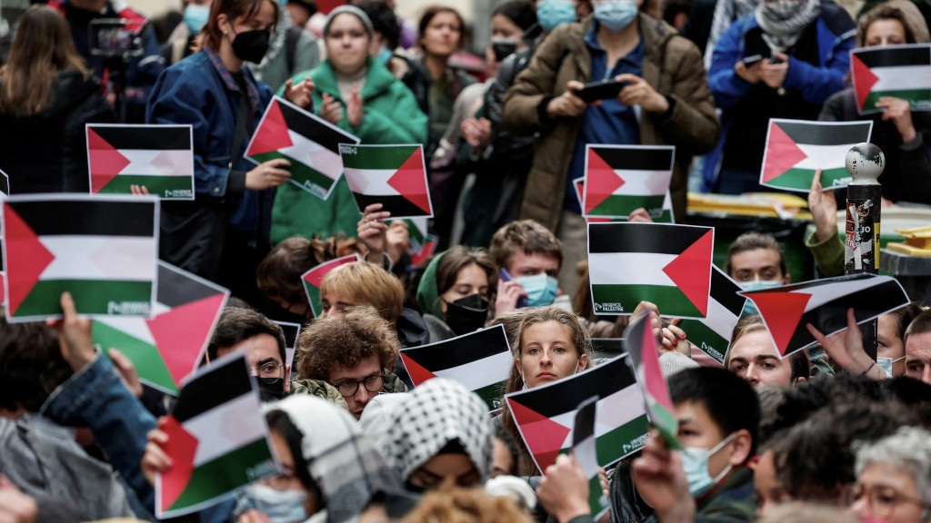 法國警方3日強行驅離巴黎政治學院(Sciences Po)內聲援加沙的靜坐抗議人士。警方表示有91人被捕。學生組織要求校方檢視和以色列各大學院校的合作關係,但遭臨時院長巴塞爾(Jean Basseres)拒絕。在巴黎第九大學(Paris-Dauphine University),一場邀請了國際法專家哈山(Rima Hassan)的會談遭校方擋下。哈山在巴勒斯坦出生,後來取得法國公民身分,她一向直言不諱地譴責在加沙的「種族滅絕」行為。校方以擾亂公共秩序風險為由發布禁止集會令,但禁令後來被司法當局推翻。法國總統馬克龍(Emmanuel Macron)譴責巴黎政治學院的驅散行動,也批評其他大學院校各項「阻撓辯論」的行為。