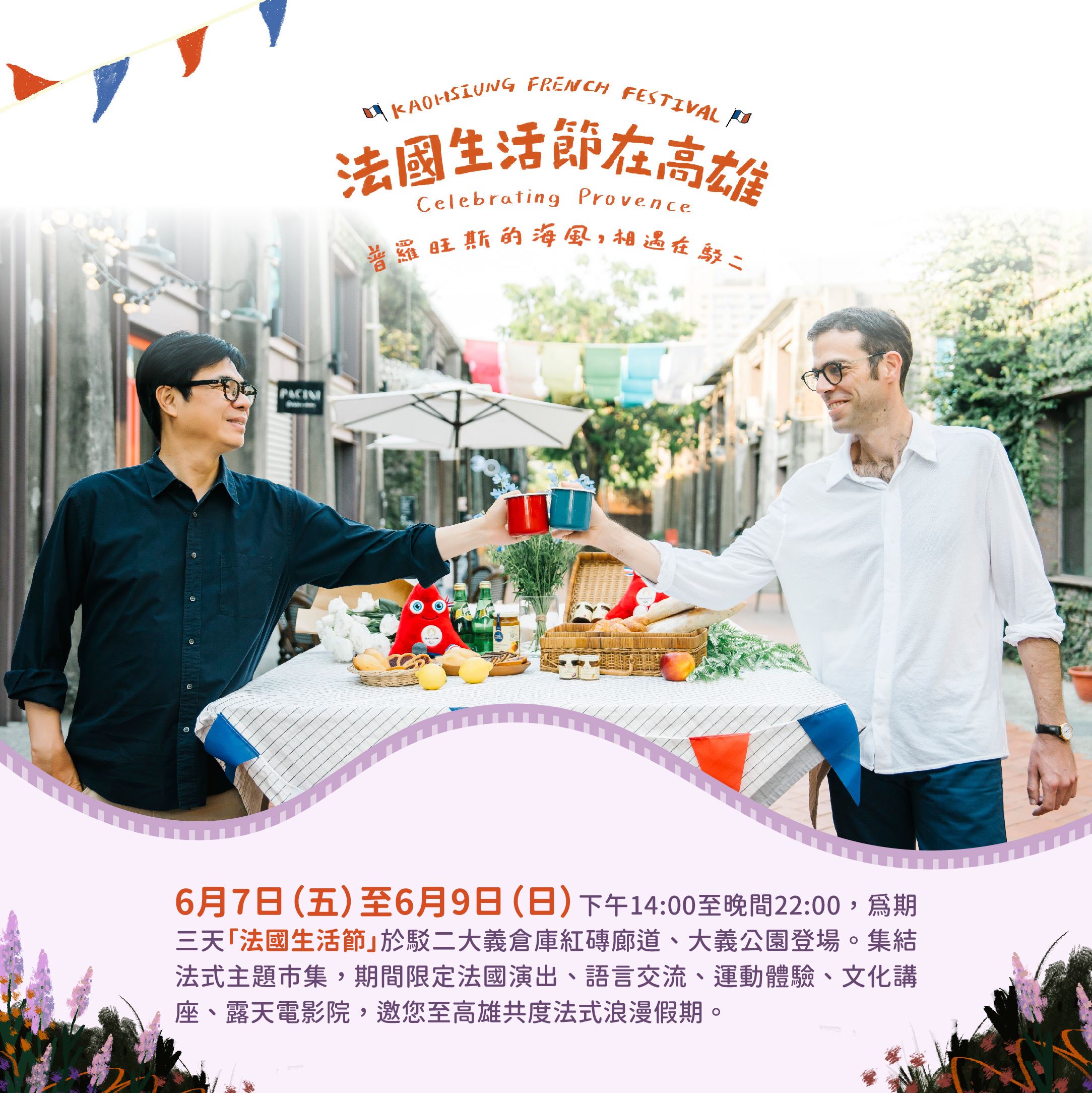 高雄將迎來一場充滿法式浪漫的盛事,法國生活節於6月7日至9日在駁二登場!為期三天的活動,集結超過60家法式主題品牌、文化體驗區,法國藝術家更將帶來精彩演出。響應巴黎奧運,大義公園將設置奧運吉祥物Phryge,期間限定的法式滾球和兒童足球也引起踴躍報名。高雄市政府行政暨國際處長張硯卿表示,首度舉辦的法國生活節,由台法攜手促成生活節的多元內容,也讓台法人民深化交流、互動更加緊密,熱情邀請高雄市民和外地旅客一起在高雄共度浪漫假期。